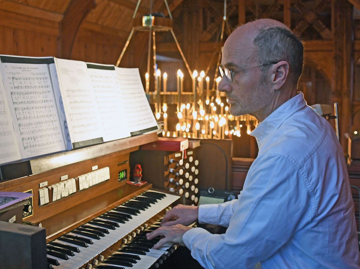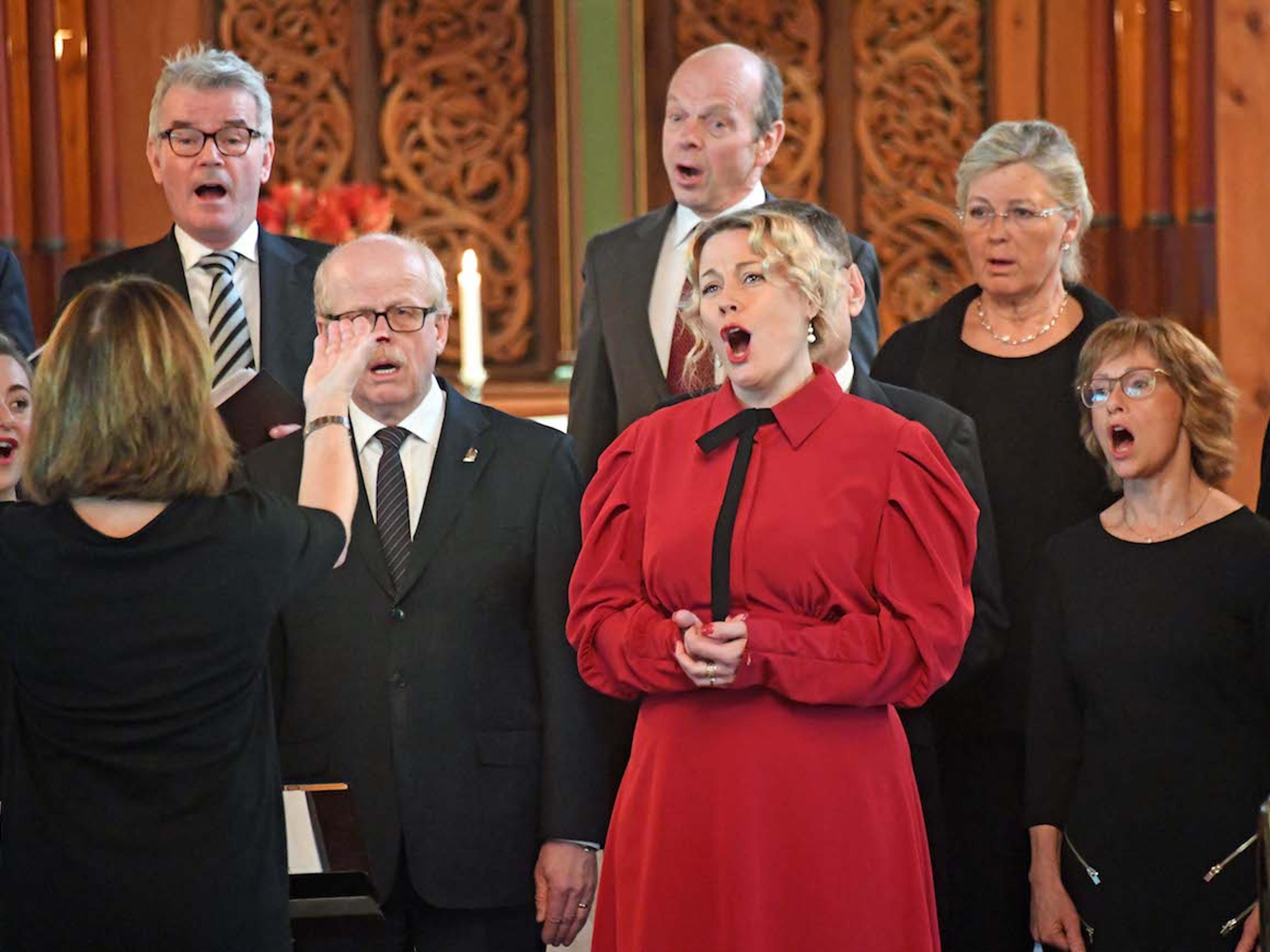 Holmenkollen kammerkor innledet gudstjenesten med Eyvind Alnæs' julemotett akkompagnert av kantor, organist Petter Amundsen.