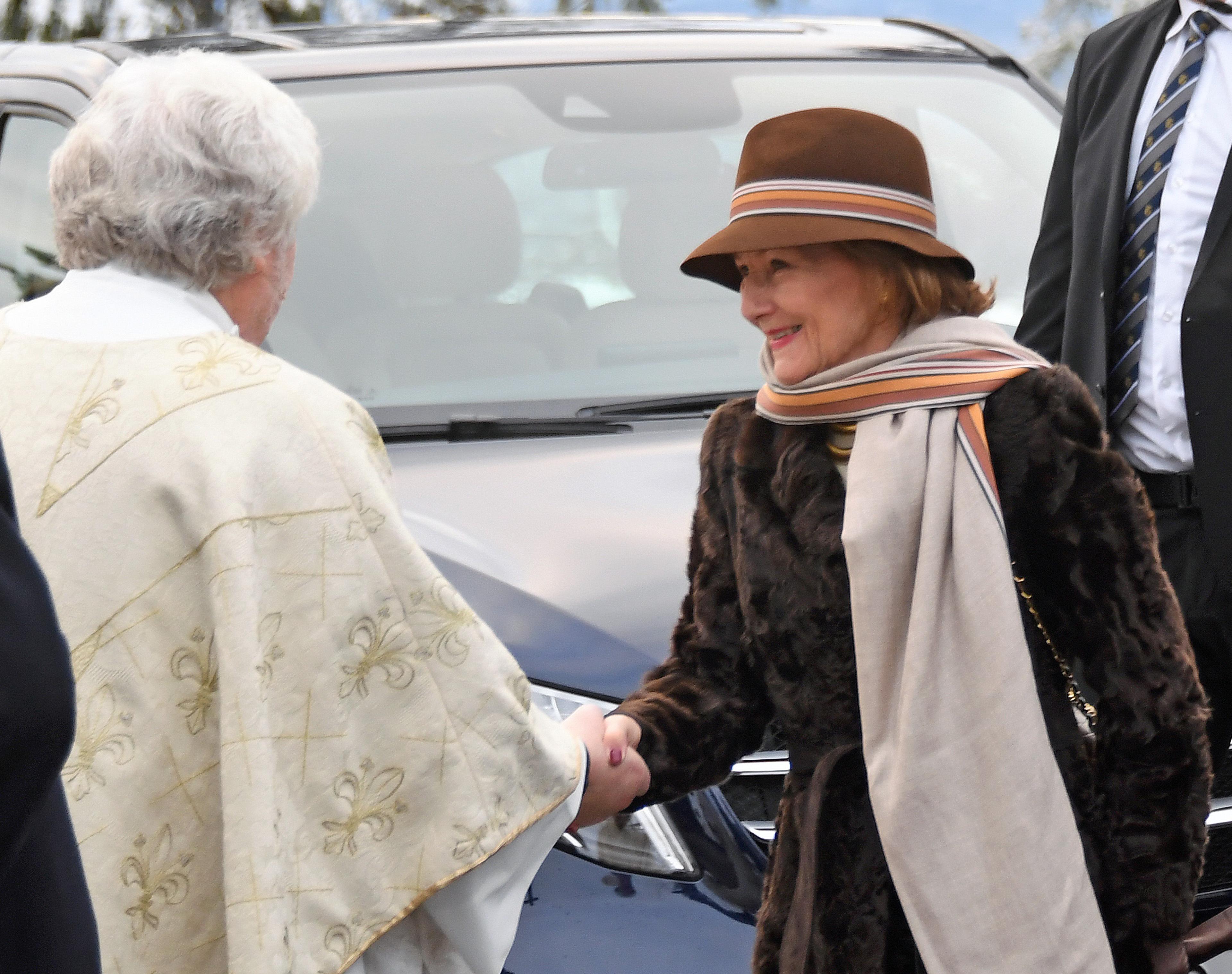Kongeparet og Prinsessen ble tatt imot på kirketrappen av forrettende prest, sogneprest Jan-Erik Heffermehl og kirketjener Inger Margrethe Magnus da de ankom kapellet i formiddag. Det er tradisjon at Kongeparet går til kirke i Holmenkollen kapell 1. juledag.