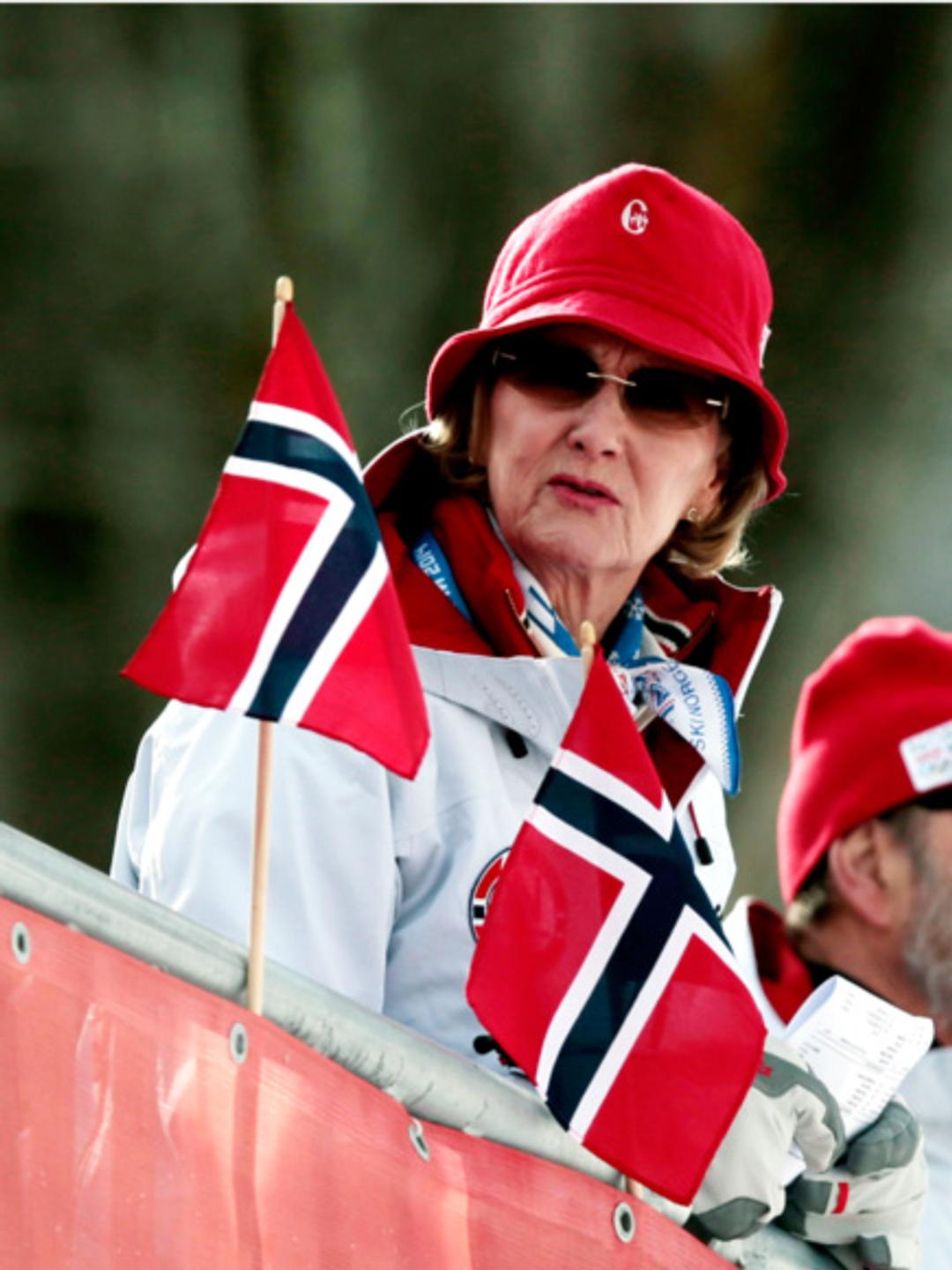 Kongen og Dronningen ankom OL-byen mandag, i tide til å se Tiril Eckhoff ta bronse under de kvinnelige skiskytternes fellesstart.