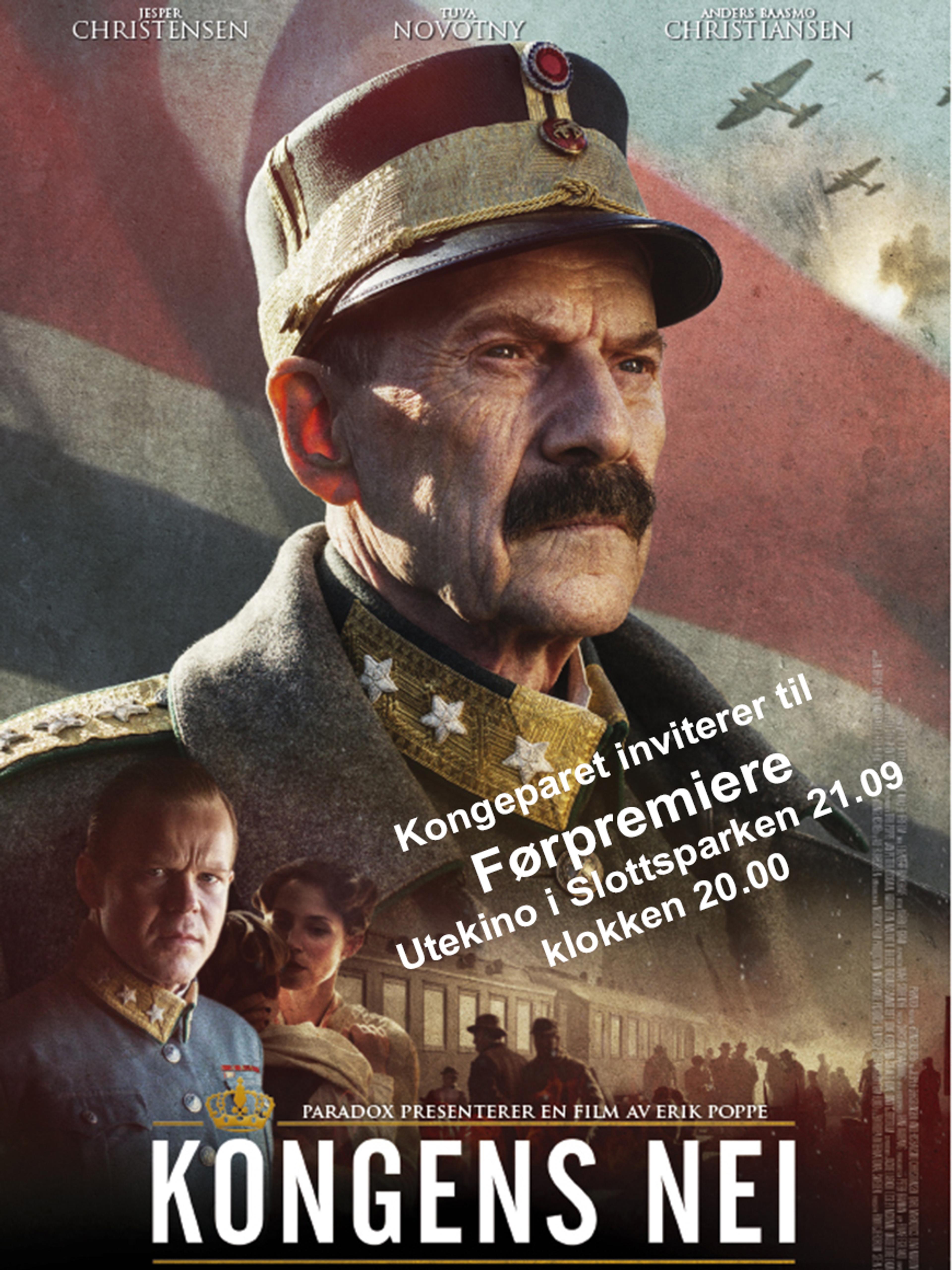 Deres Majesteter Kongen og Dronningen inviterer deg til gratis førpremiere på «Kongens Nei». Filmen vises i Slottsparken onsdag 21. september klokken 20.00.