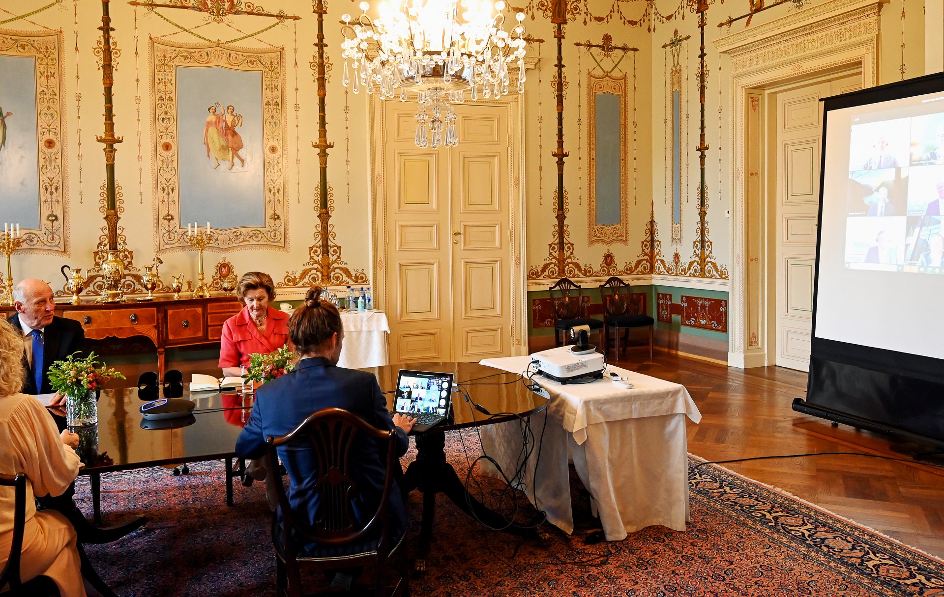 - Det gjorde inntrykk å høre hvorledes dere har jobbet gjennom denne perioden, med alle sine spesielle og helt nye utfordringer som ingen av oss hadde noen øvelse i fra før.Vi ser nå med stor glede frem til sommeren. Kongen og jeg begynner så smått å ta tilbake det normale livet, når vi neste uke reiser med Kongeskipet til Vestland fylke. Da skal vi med egne øyne og øre få oppleve hvorledes folk har det i Hyllestad, Flåm og Florø. Det blir færre mennesker enn vi er vant med, men vi er glade for at vi igjen kan reise litt rundt, sa Dronning Sonja ved avslutningen av møtet.