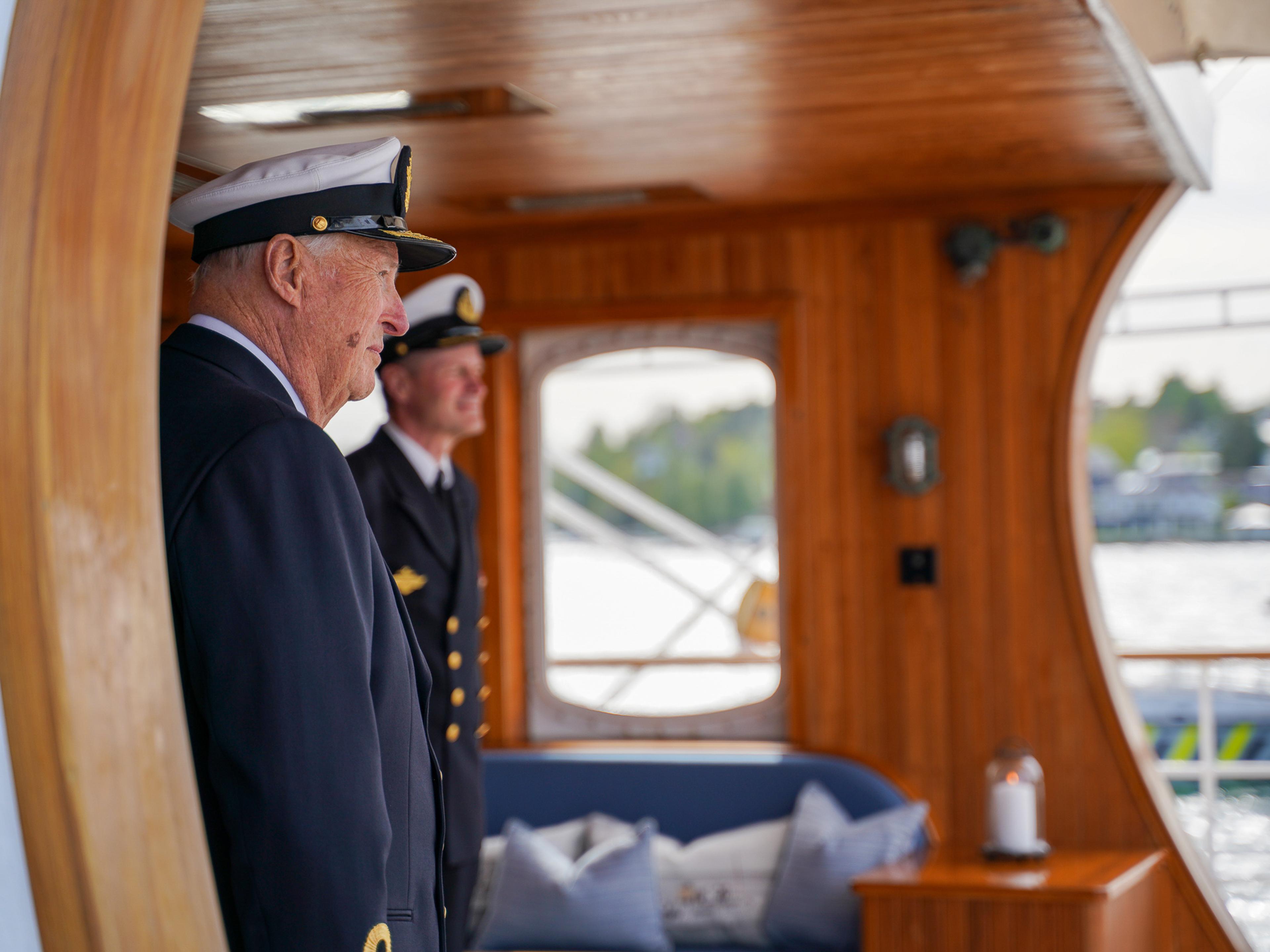 Kongeparet og Kronprins Haakon gikk om bord fra Kongesjaluppen i Frognerkilen i Oslo og ble tatt imot av skipssjefen, kommandørkaptein Geir Vidar Thorkildsen.