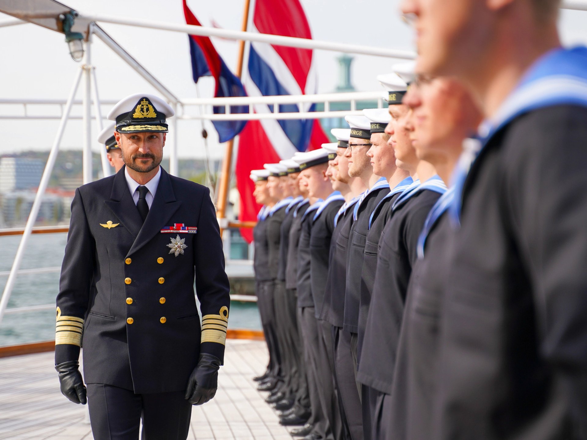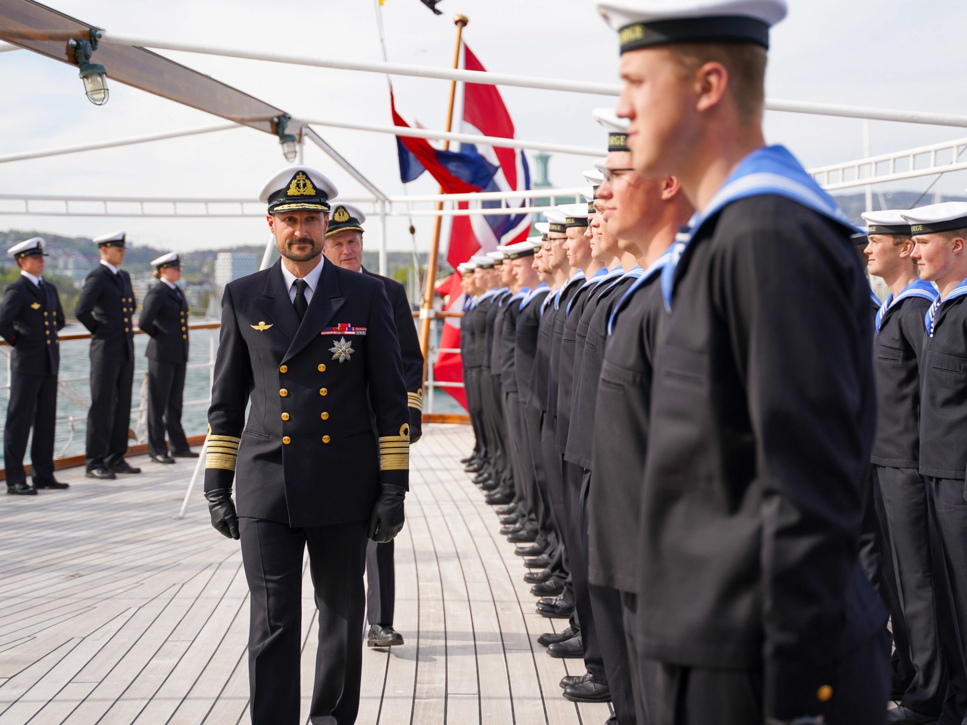 Kronprins Haakon inspiserte skipet for å se om det var klart til å ta i bruk.