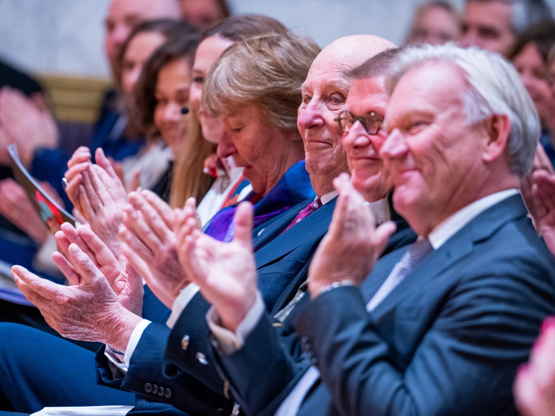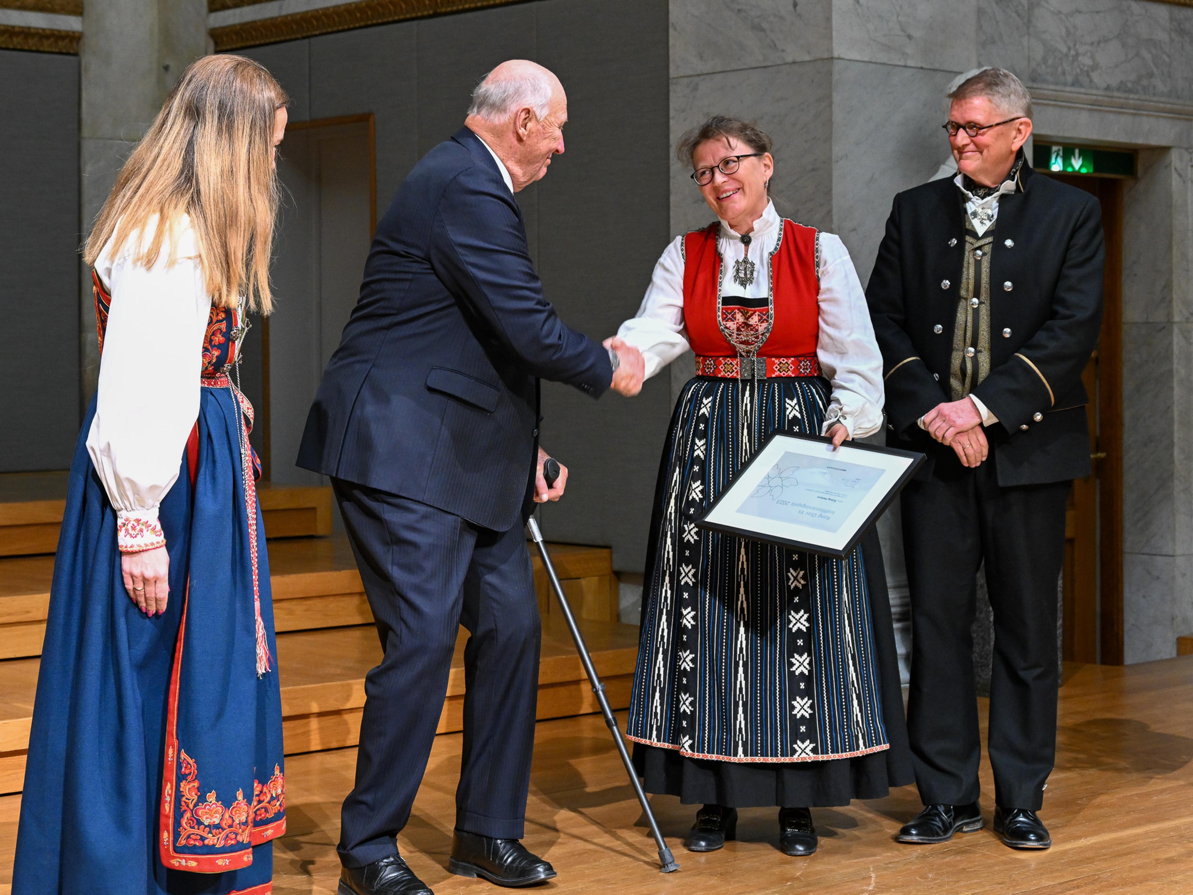 Kong Harald delte ut prisen under en høytidelig seremoni i Universitetets fullsatte aula i Oslo. Helseminister Ingvill Kjerkol og ordfører Marianne Borgen var også til stede.