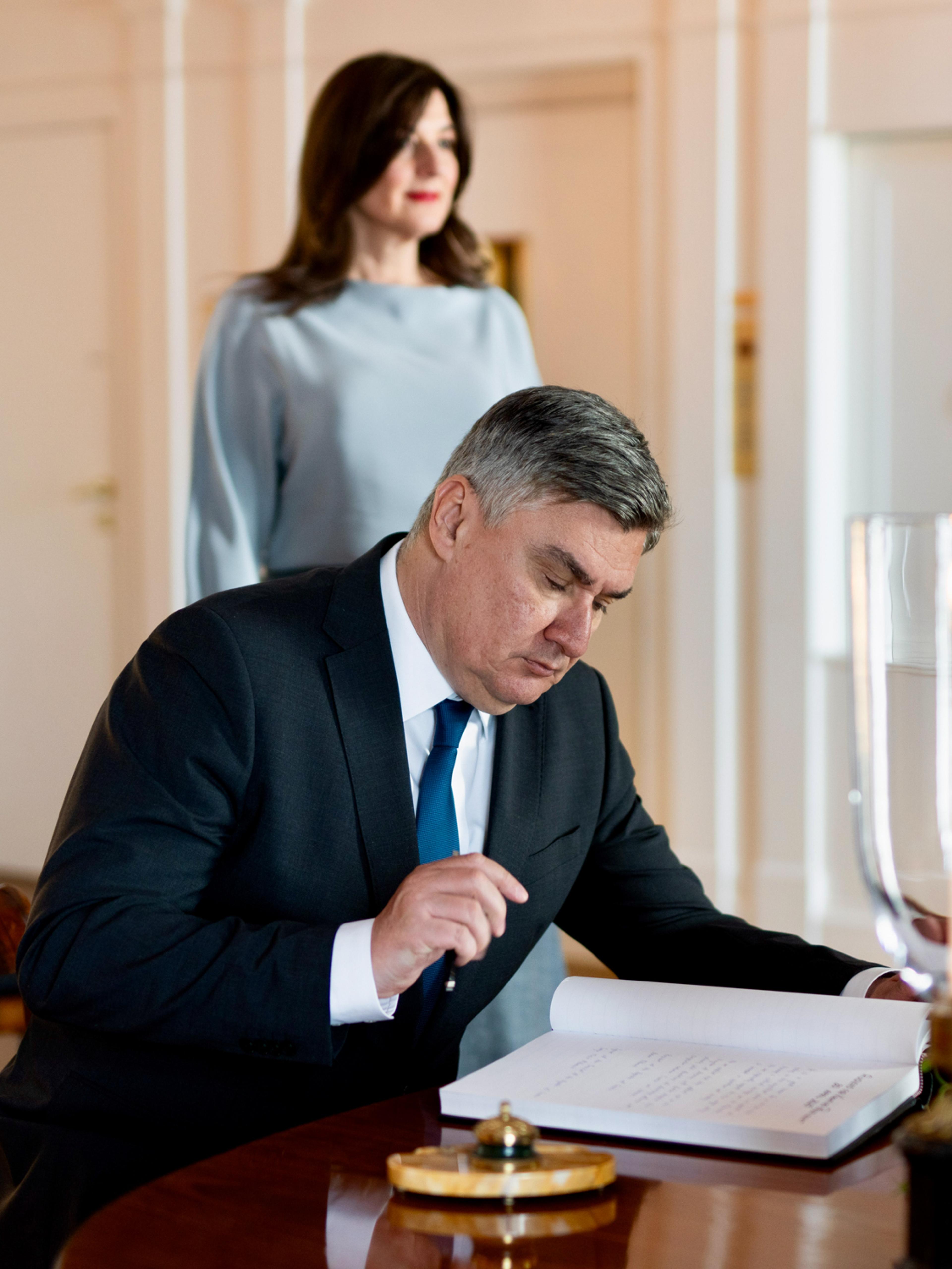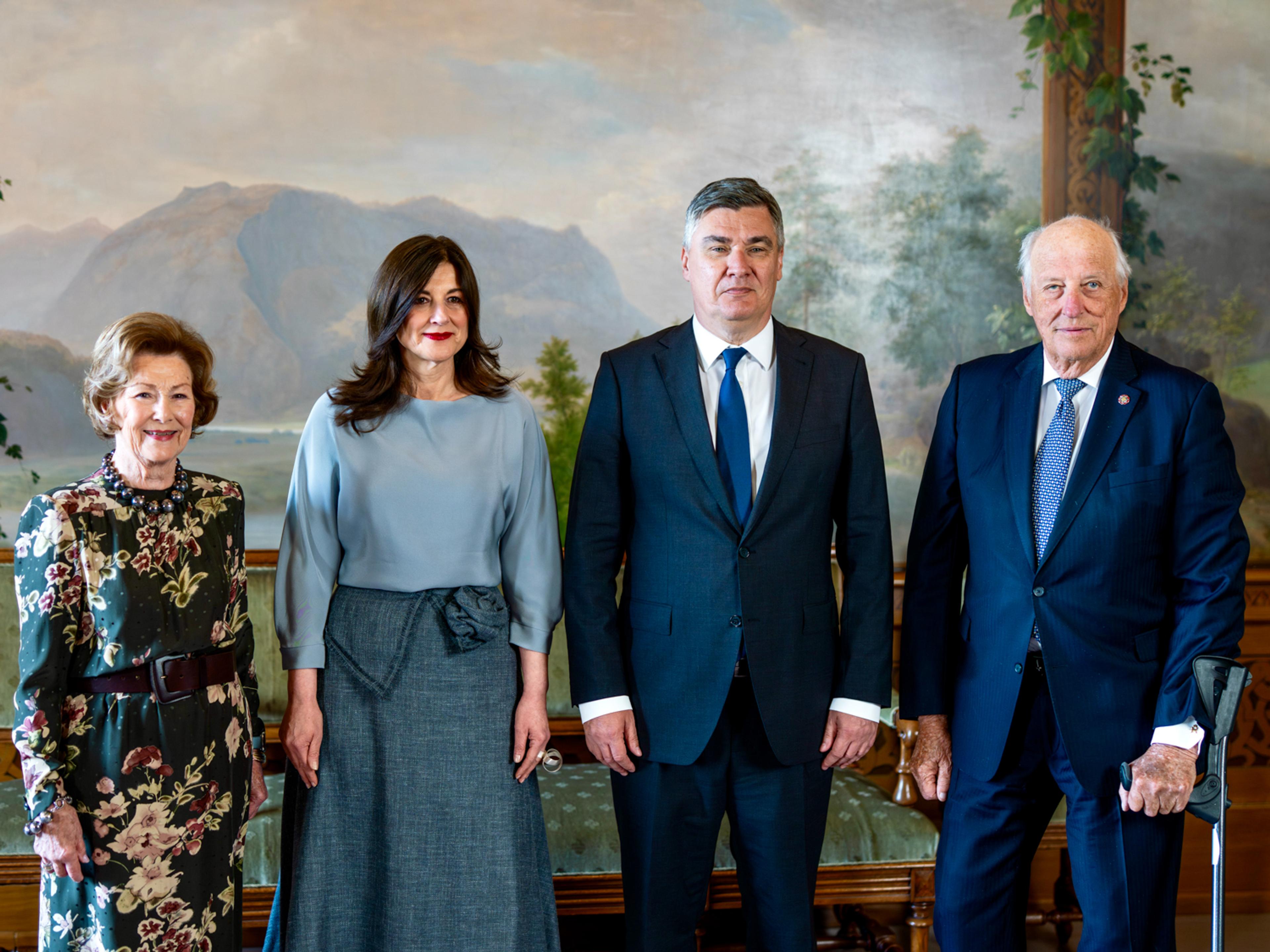 Kroatia sin president, Hans Eksellense Zoran Milanović, er på offisielt besøk i Noreg. Kongeparet ønskte presidenten og førstedame Sanja Musić Milanović velkomne til Det kongelege slottet i ettermiddag.