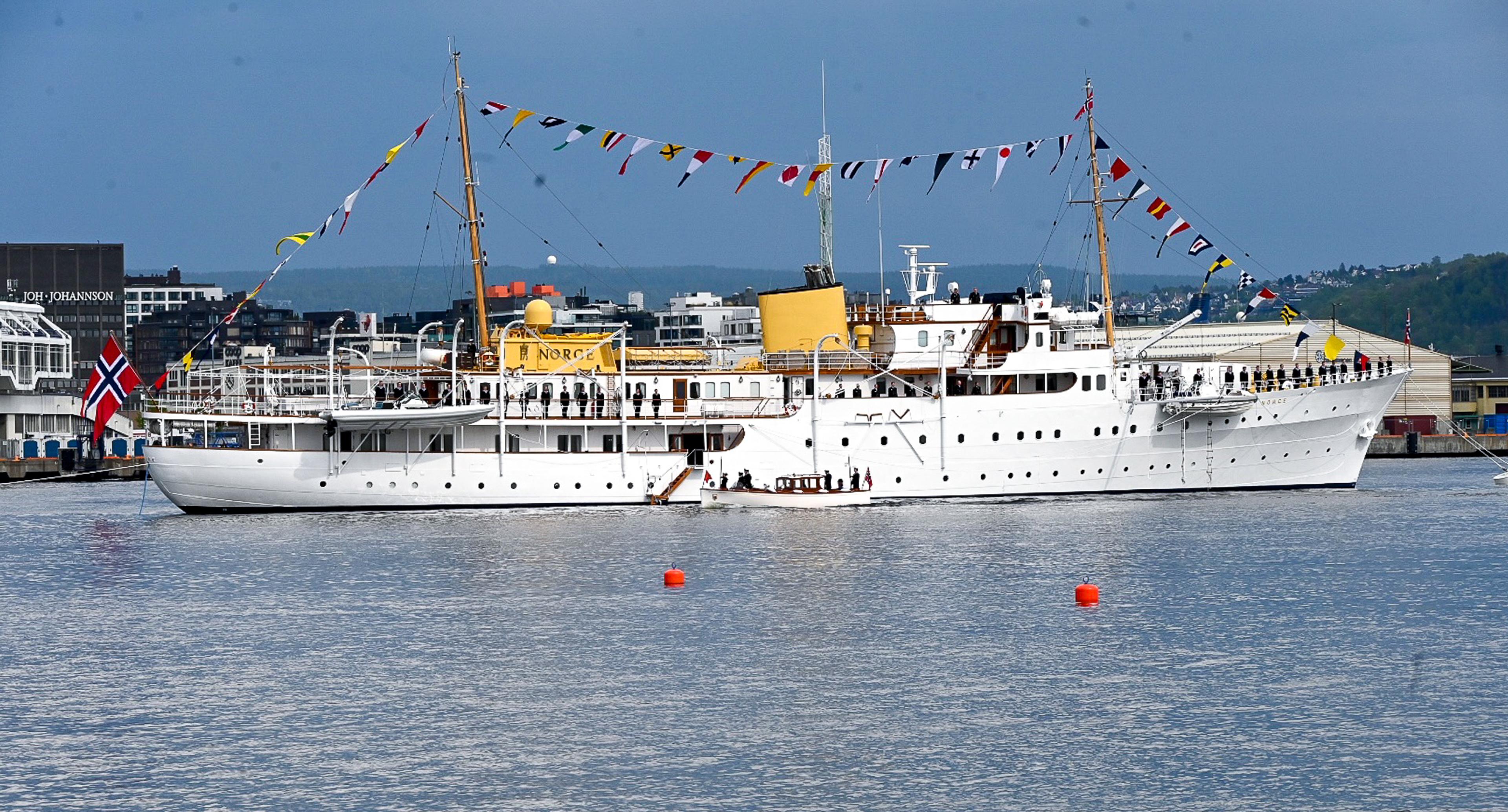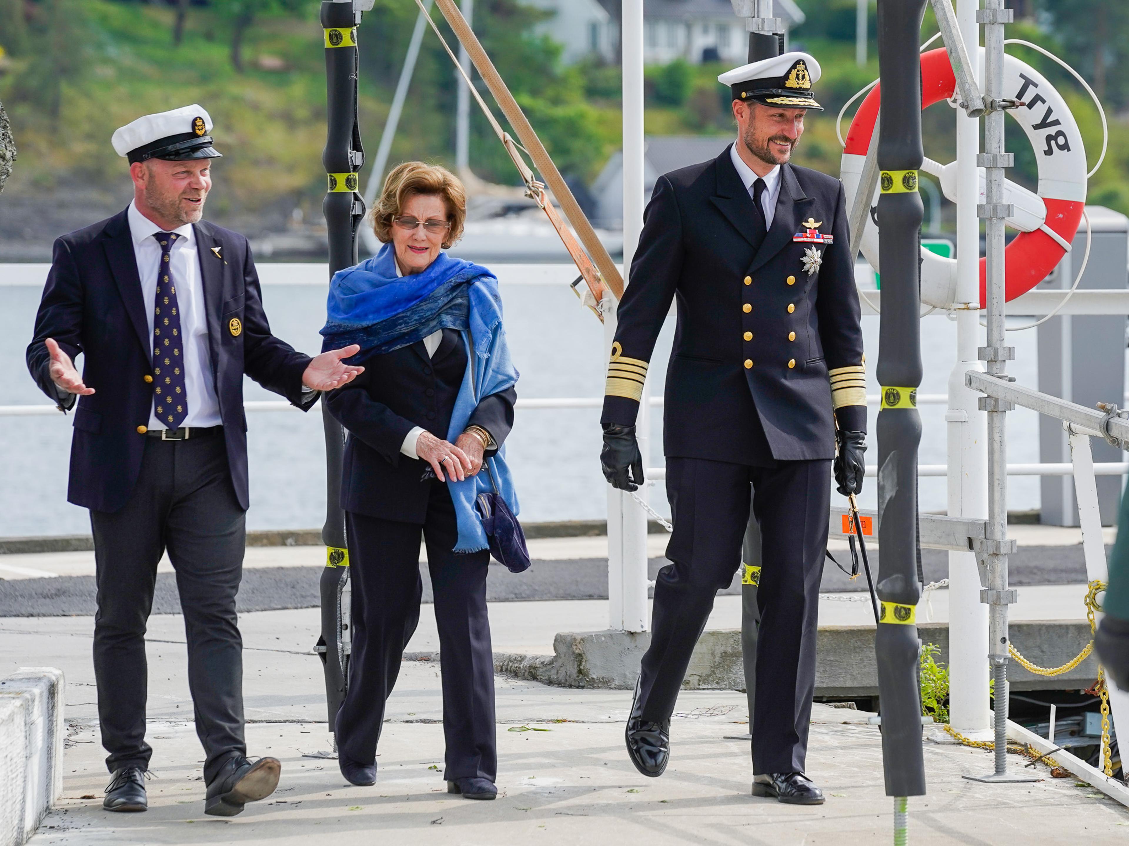 Kronprins Haakon og Dronningen gikk om bord fra Kongesjaluppen i Frognerkilen i Oslo og ble tatt imot av skipssjefen, kommandørkaptein Geir Anders Hoff Aronsen.