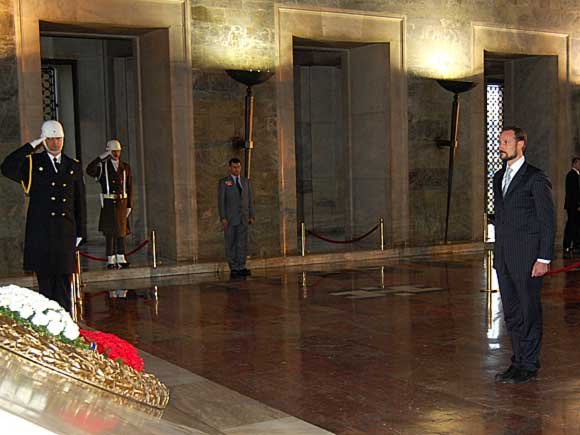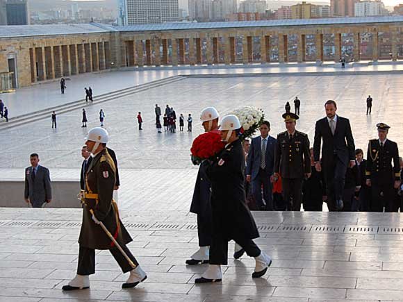 Tirsdag ettermiddag startet Hans Kongelige Høyhet Kronprinsens offisielle besøk i Tyrkia. Første punkt på programmet var kransnedleggelse ved minnesmerket over Tyrkias landsfader, Atatürk.