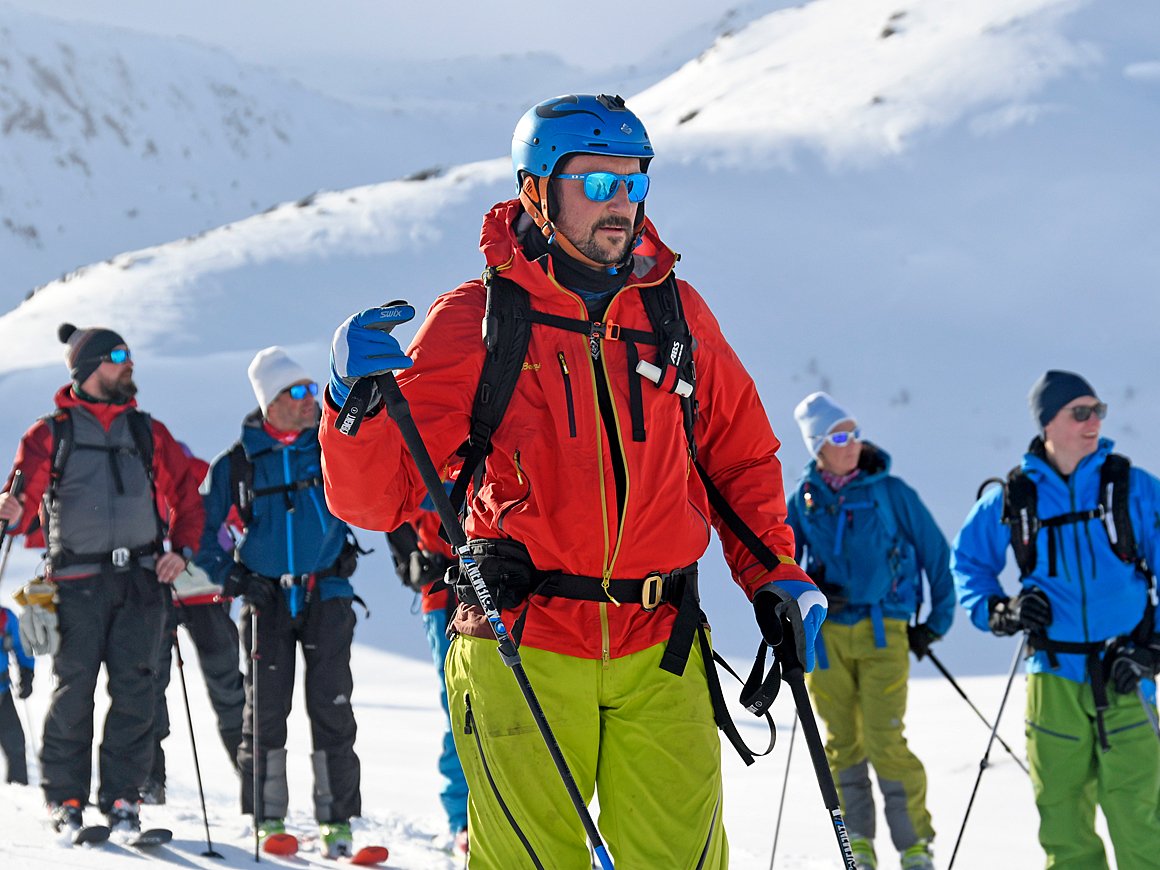 Målet for dagens topptur var Snøtinden 978 meter over havet og startet etter en natt på Haakonsbu. Etter frokost løyet vinden, og tåken lettet nok til at det ble skitur. Kronprins Haakon fikk hjelp til å gjøre gode vurderinger og valg før under turen av Espen Høst, en erfaren skikjører og skredekspert.