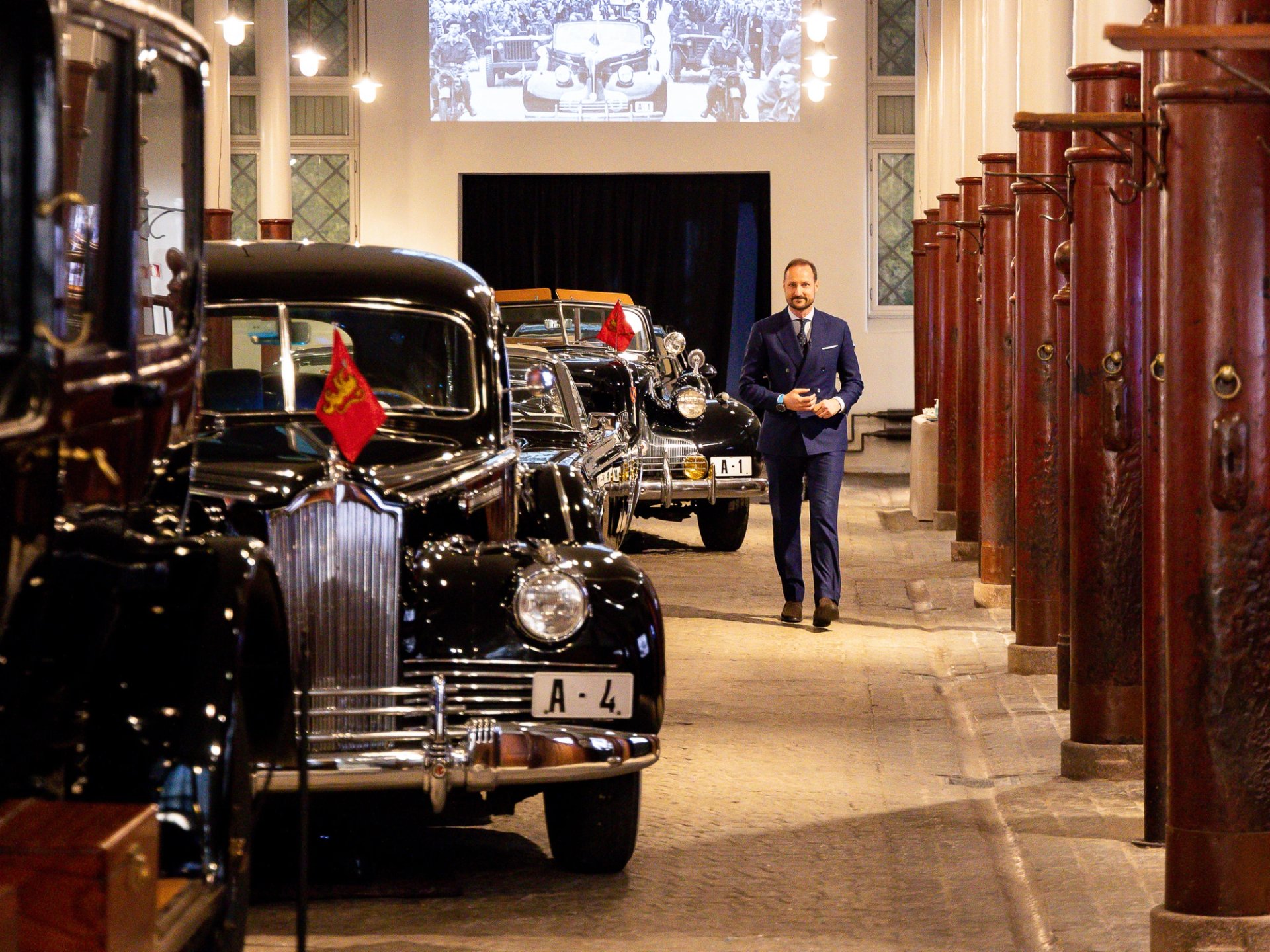 På rekke og rad står ikoniske biler, som «bryllupsbilen» A5 Lincoln Continental Convertible fra 1966, bilparkens skjulte skatt Packard One Eighty fra 1942 – kjøpt under krigen og i aktiv tjeneste til lang utpå 2000-tallet, og A1 Buick Roadmaster fra 1939, som nok er den mest kjente av Kongehusets biler. Nummerskiltet A-1 er uløselig knyttet sammen med freden, friheten og Kongens hjemkomst 7. juni 1945.