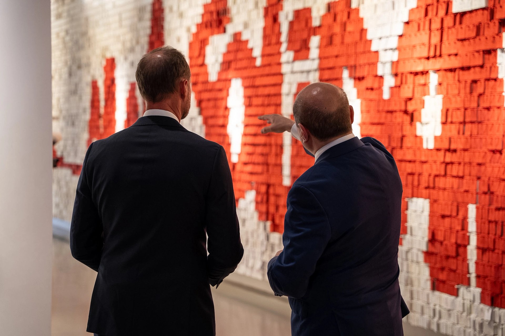 Ved Zielony most, broen som leder til gamlebyen, ble Kronprinsen møtt og ønsket velkommen av ordføreren i Gdansk, Aleksandra Dulkiewicz. Ordføreren viste rundt i det historiske sentrum av byen, før Kronprinsen var på en høflighetsvisitt på rådhuset.