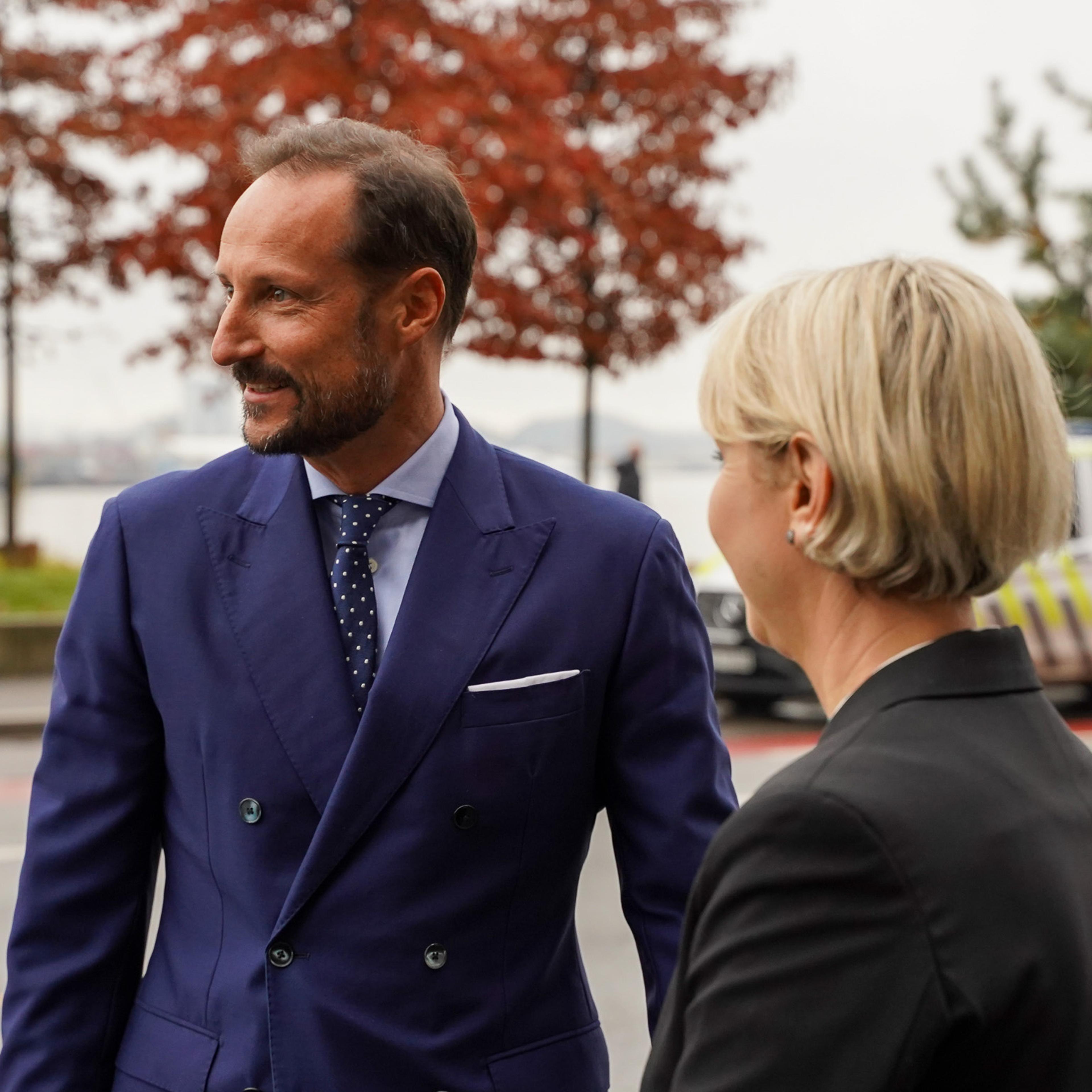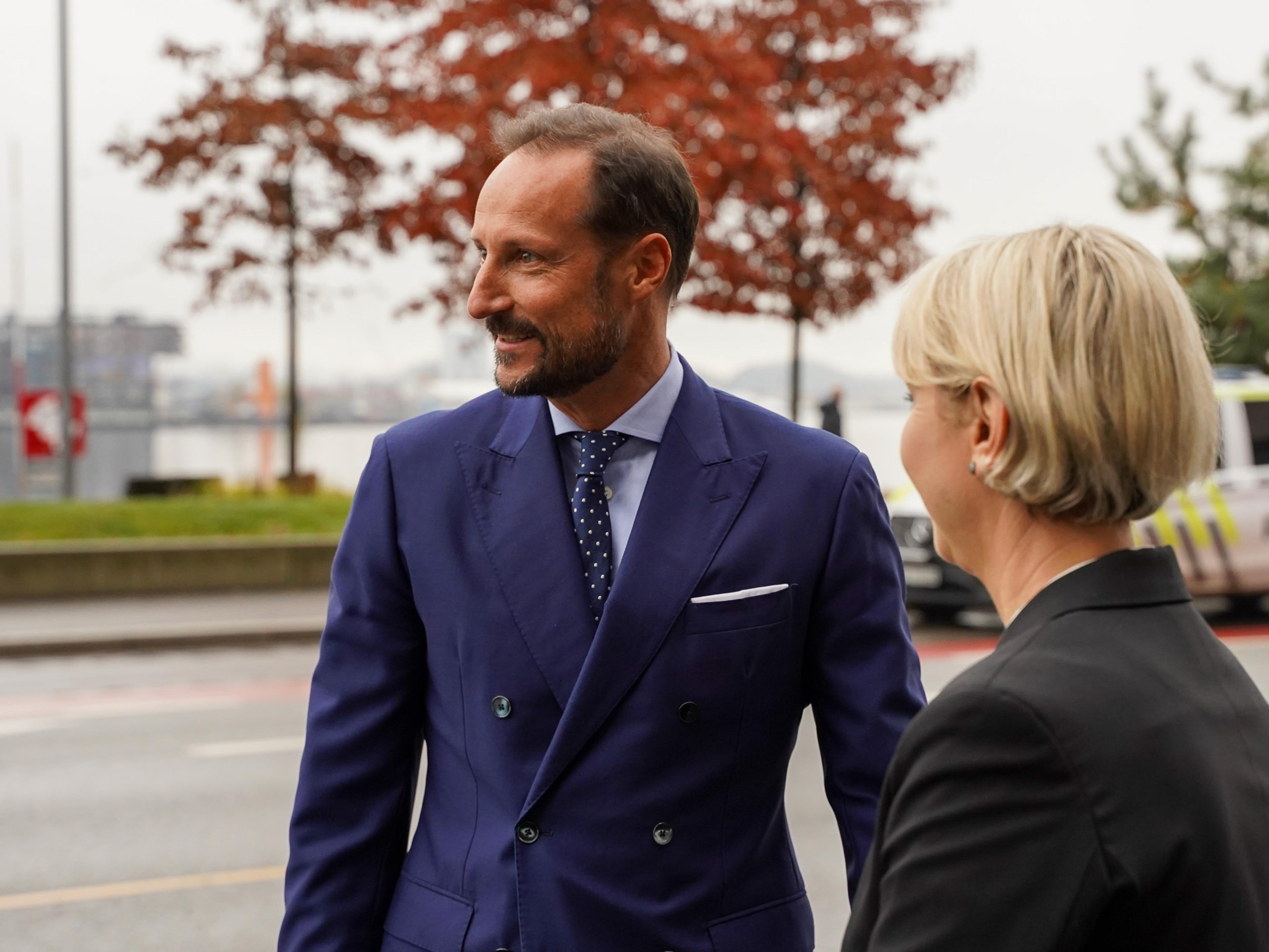 Den Høgvørde Kronprins Haakon besøkte for første gong Nasjonal sikkerheitsmyndigheit (NSM) i Oslo sentrum i dag.
