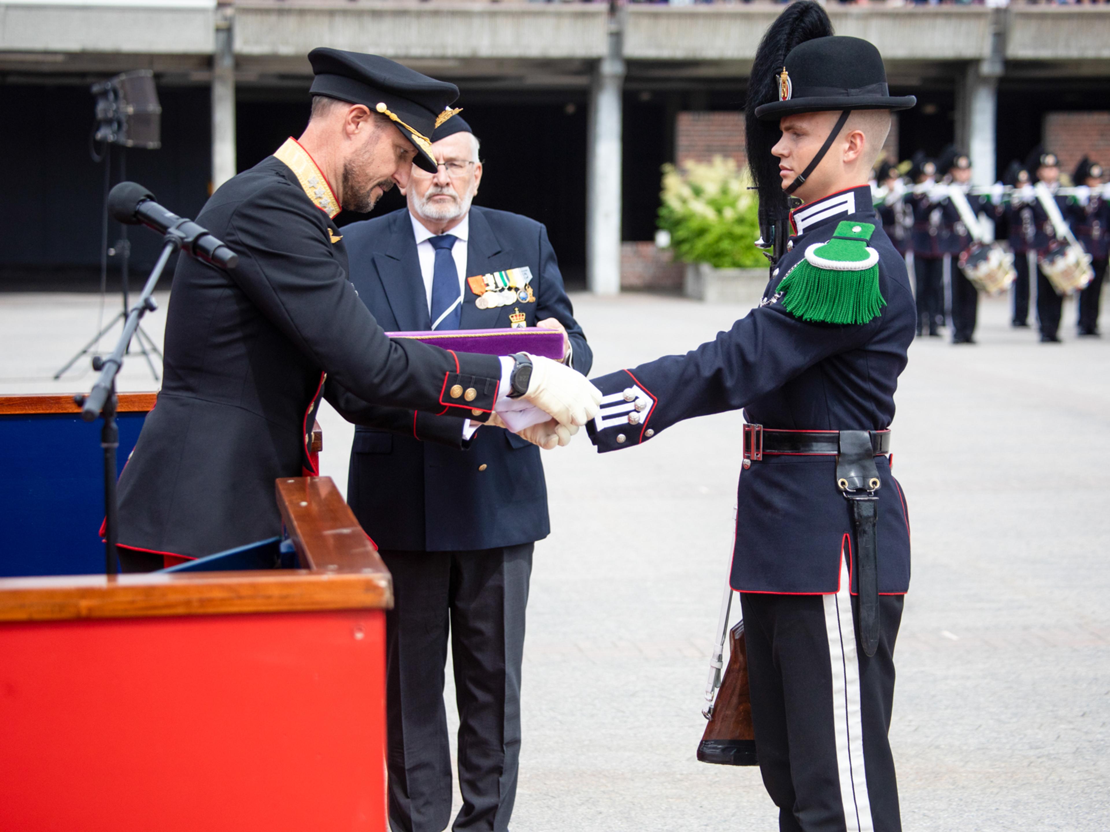 I tillegg delte Kronprins Haakon ut Brigader Leif Schanches æresbevisning – en sabel – til løytnant Tomas Skjelland.