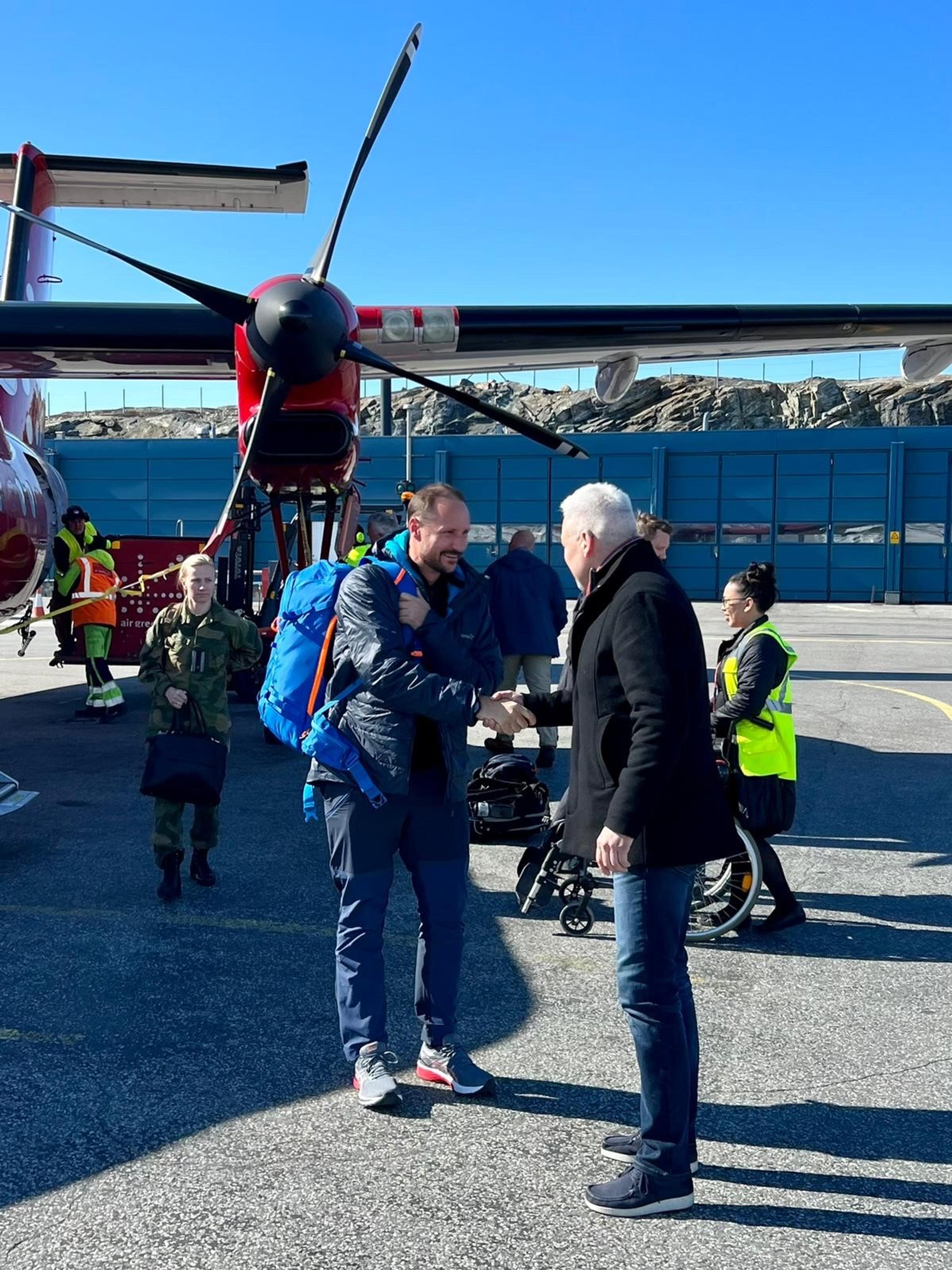 – Det er hyggelig å bli invitert av UiT til å være med på ekspedisjonen, og en fantastisk måte å markere at det er femti år siden min bestefar åpnet universitetet. Dette er en formidlingsekspedisjon, der vi skal snakke om polarhistorie, arktisk friluftsliv og klimaforskning, temaer jeg er opptatt av og synes er viktig, sa Kronprinsen da han i ettermiddag ankom Ilulissat vest i Grønland (Kalaallit Nunaat).