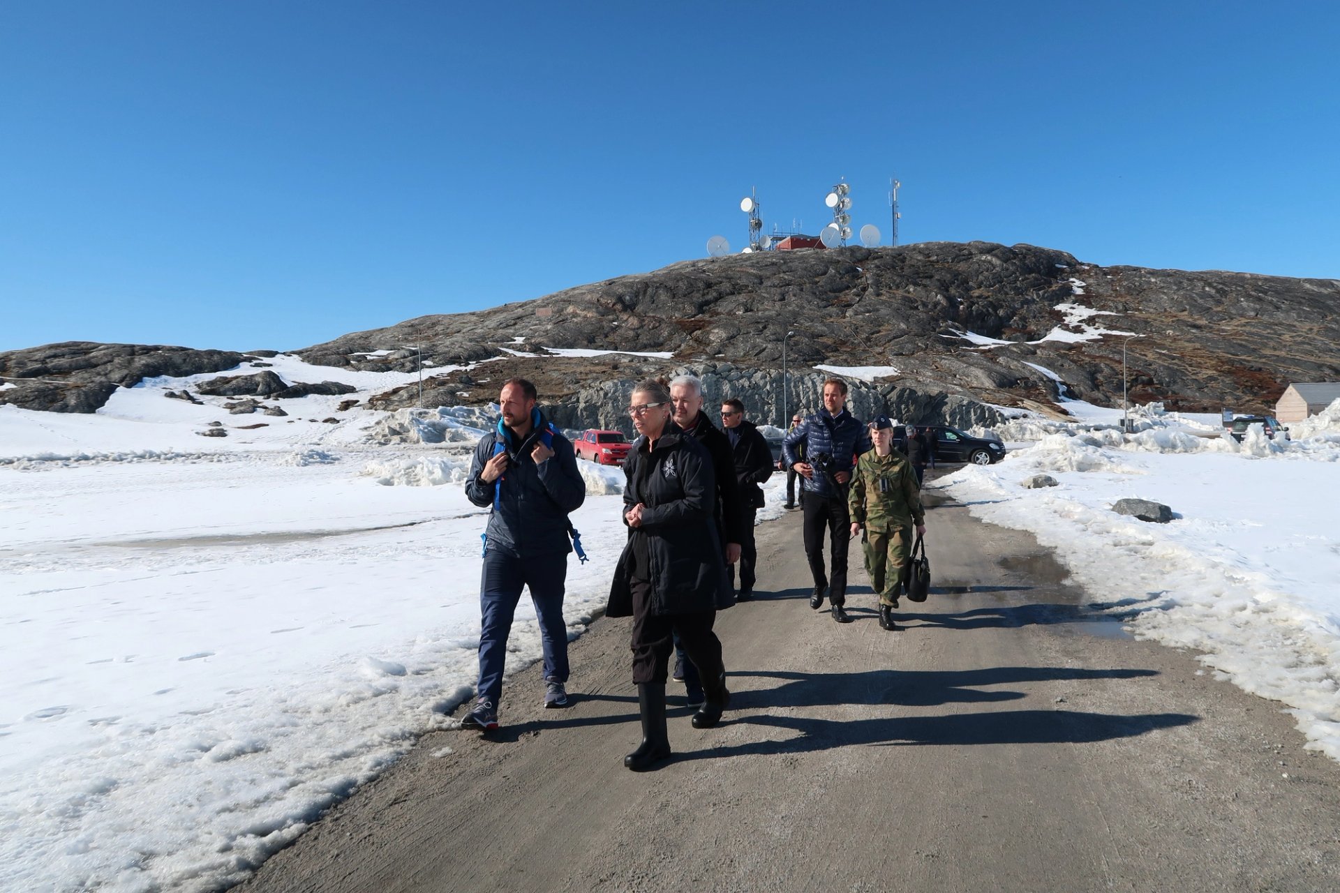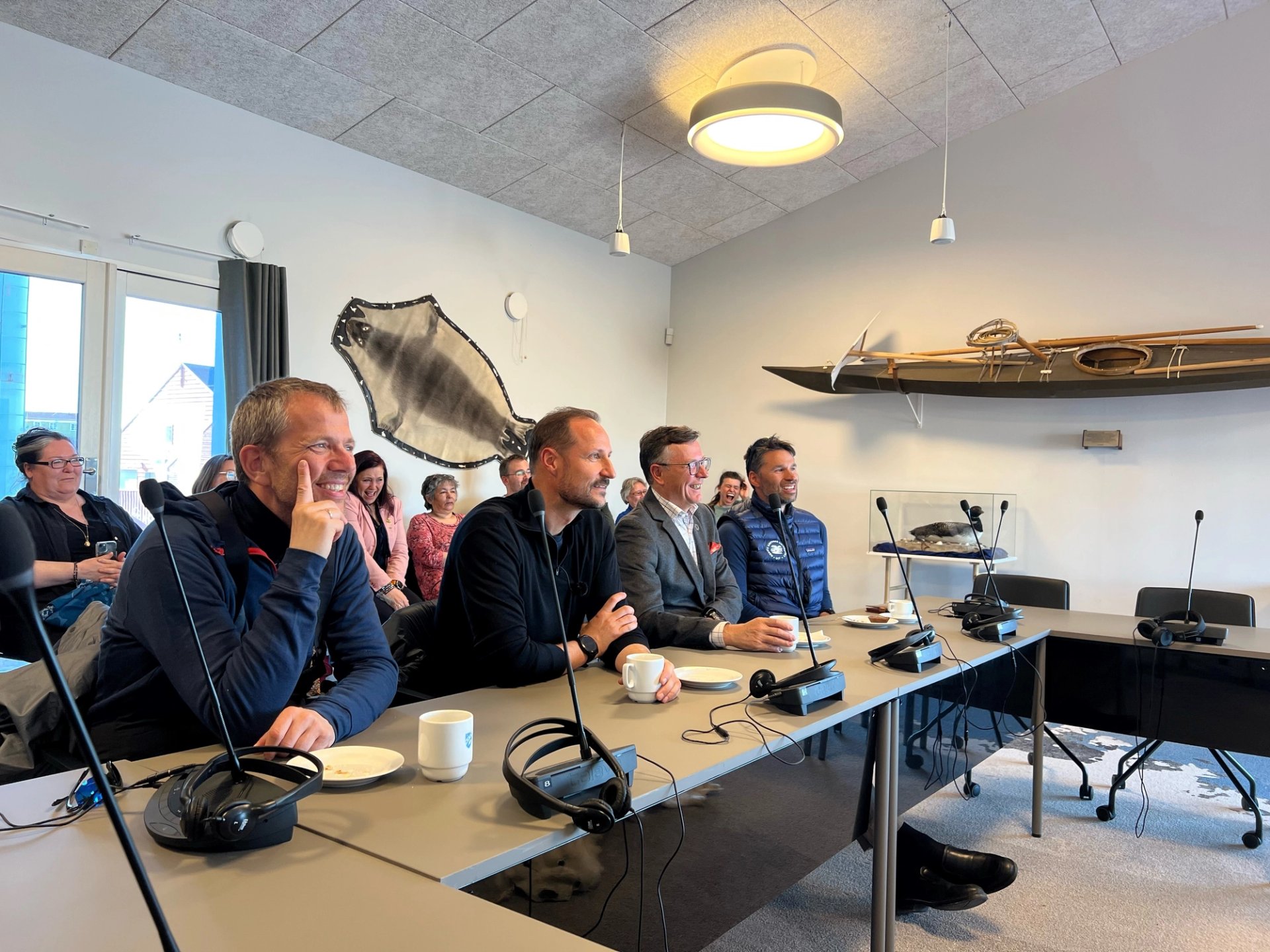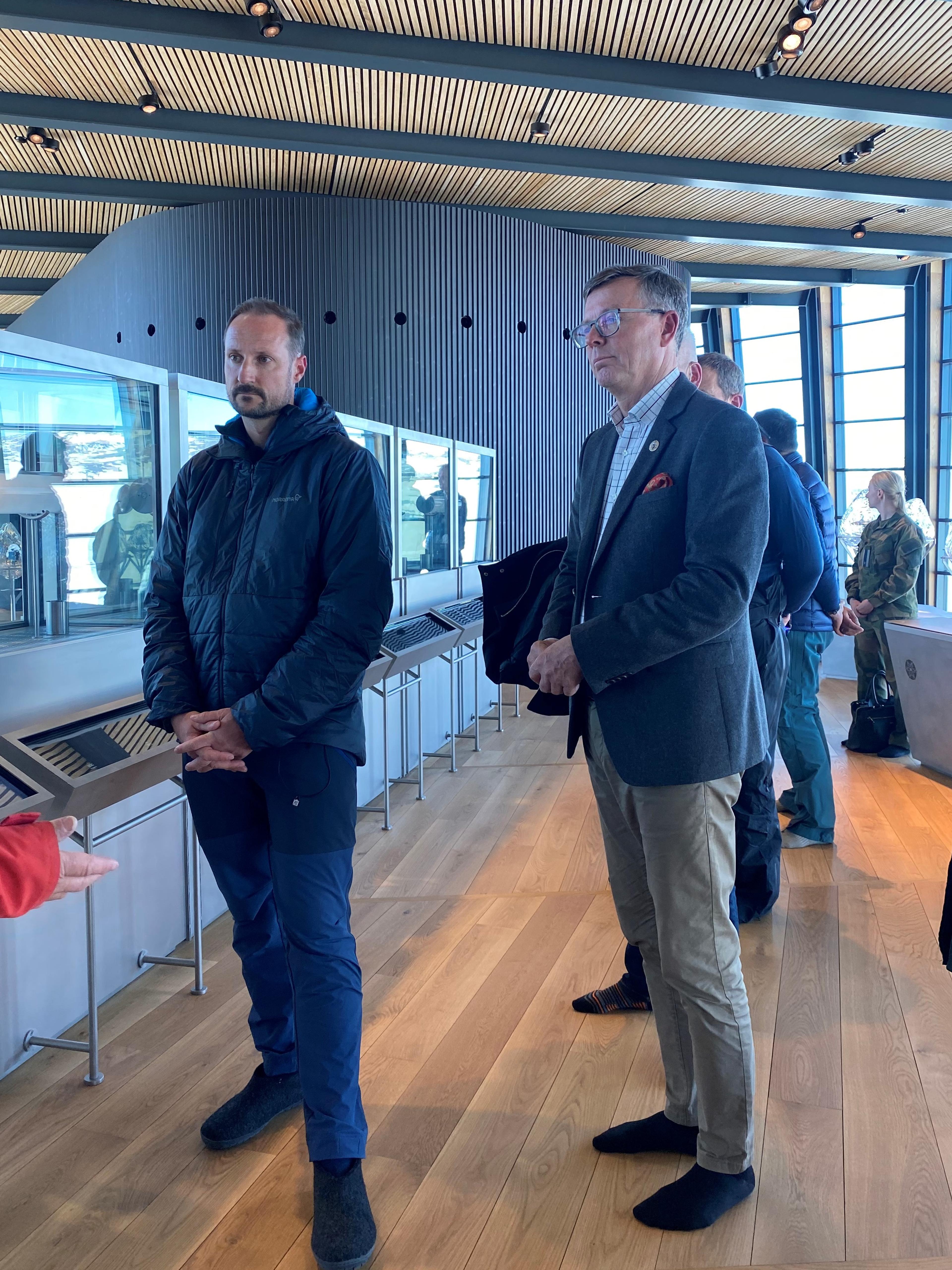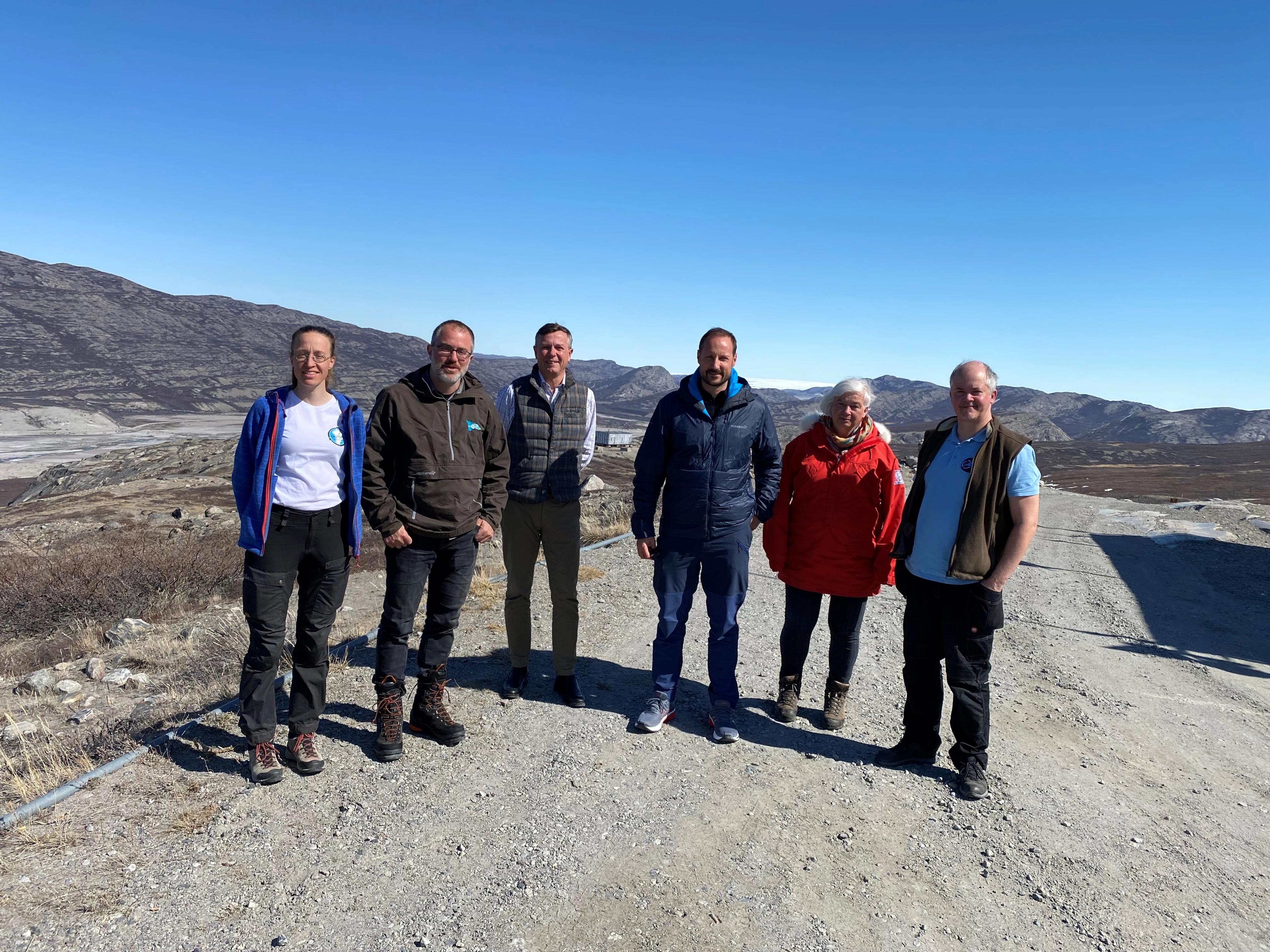 Der møtte Kronprinsen klimaforskerne Dorthe Dahl-Jensen, professor ved Københavns universitet, og Kerim Hestnes Nisancioglu, professor i klimadynamikk ved Universitetet i Bergen og Bjerknessenteret for klimaforskning, og Dag Rune Olsen, rektor ved UiT Norges arktiske universitetet. Forskerne er tilknyttet forskningsstasjonen EastGRIP (East Greenland Ice-Core Project) som Kronprins Haakon skal besøke under ekspedisjonen.