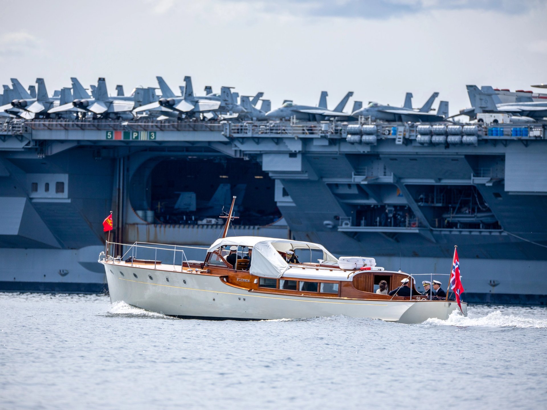 Kronprinsen var invitert til å besøke hangarskipet av amerikanske myndigheter og gikk i formiddag om bord i USS "Gerald R. Ford» fra Kongebåten “Stjernen”.