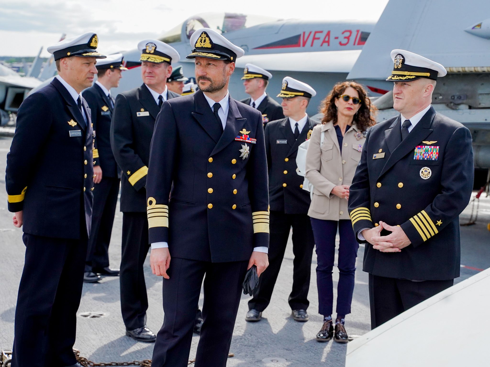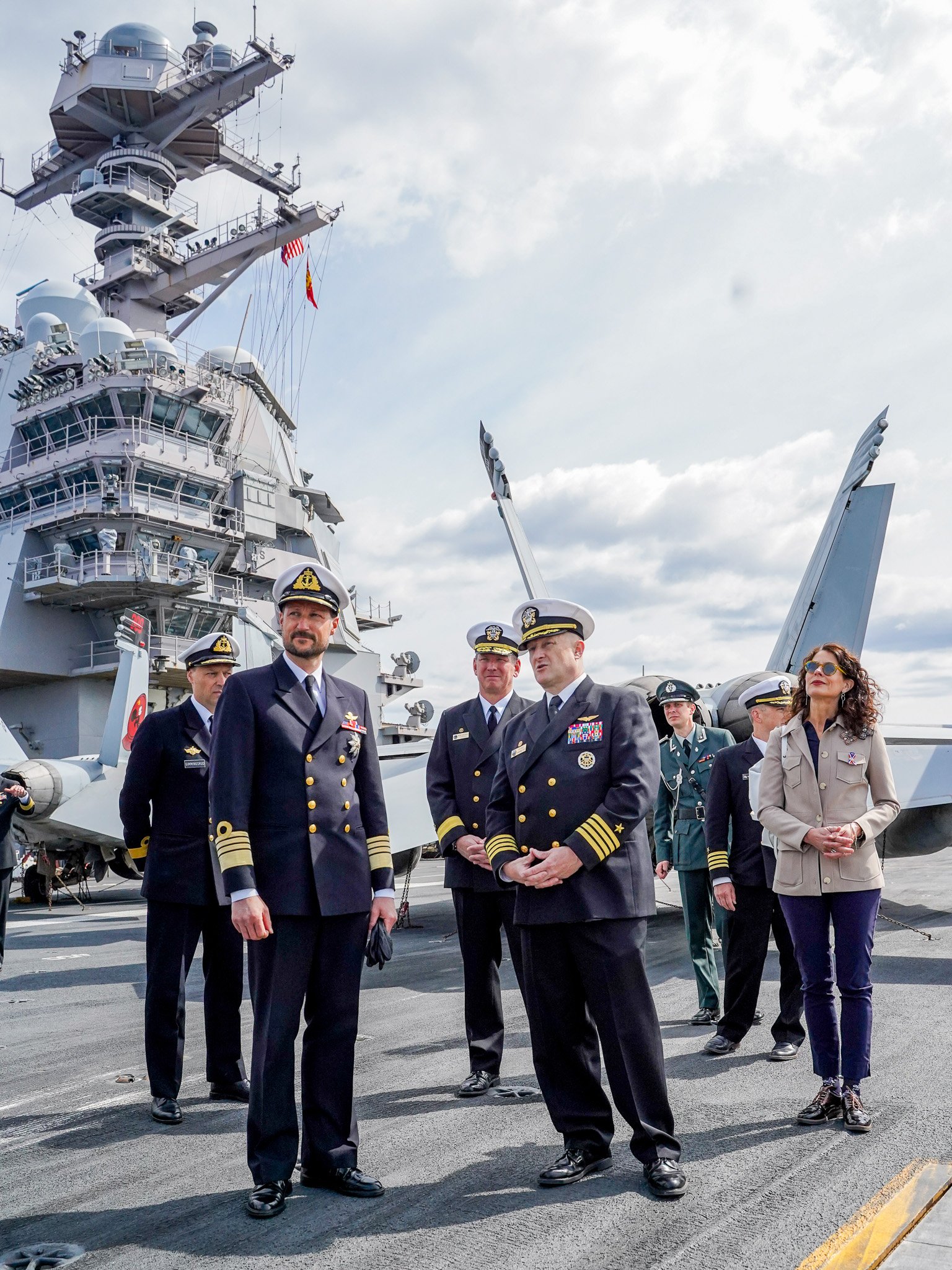 Kronprinsen besøkte USS "Gerald R. Ford” sammen med sjef for marinen, flaggkommandør Trond Gimmingsrud, og Deputy Chief of Mission Sharon Hudson-Dean ved USAs ambassade i Norge. Om bord fikk Kronprins Haakon orienteringer av skipssjefen, kommandør Rick Burgess, og sjef for hangarskipgruppen, flaggkommandør Erik Eslich. Kronprinsen fikk også møte deler av mannskapet og en omvisning på store deler av skipet.