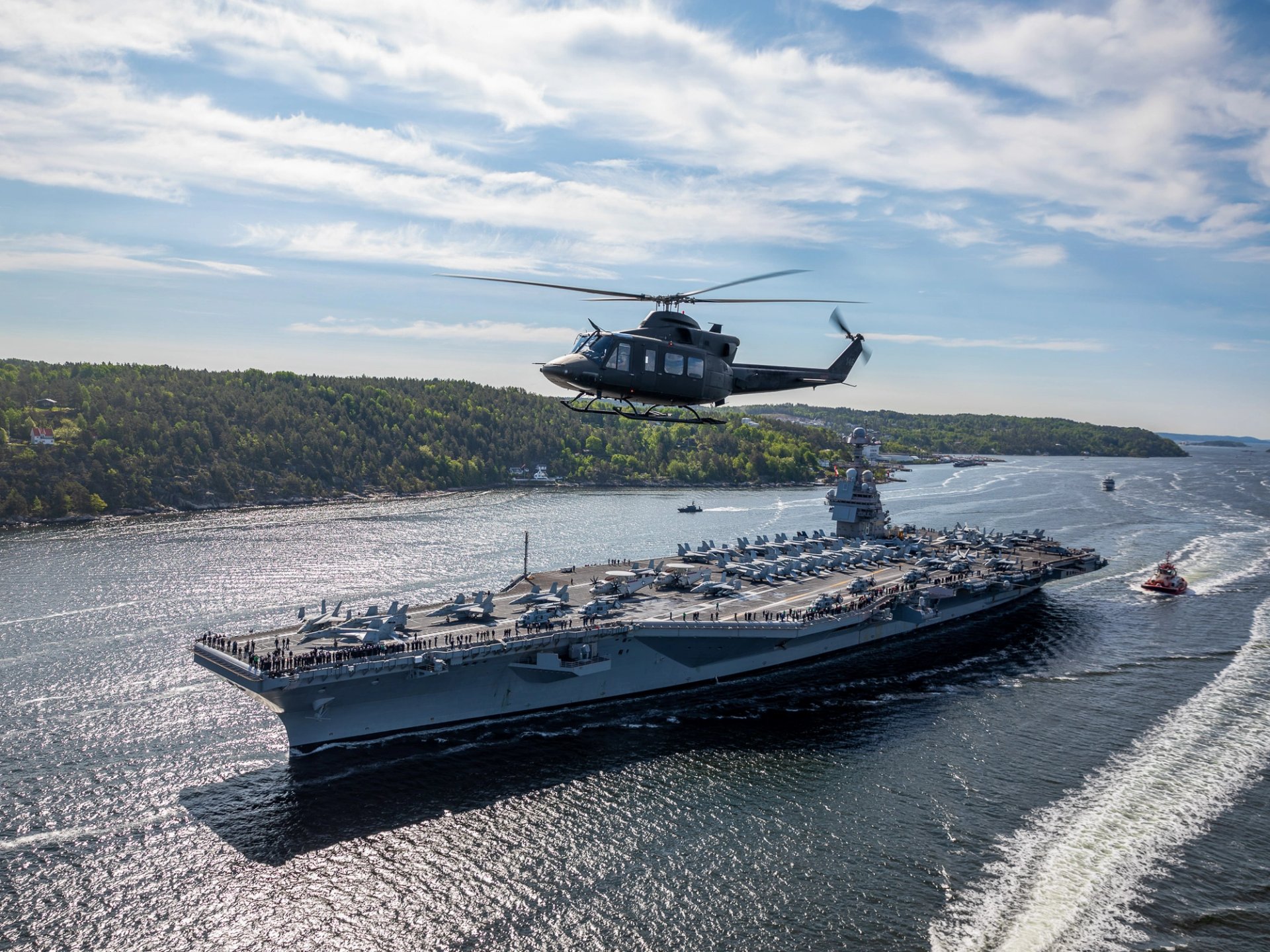 Hangarskipet, som bærer navnet til tidligere president Gerald R. Ford, la ut på sitt første operative tokt fra marinebasen i Norfolk i USA, og Oslo er første stopp på dette toktet. Før skipet gikk inn i norske farvann, patruljerte det i Nordsjøen. En rekke skuelystne fulgte med – fra båter og på land – da det 333 meter lange og 78 meter høye skipet onsdag morgen gikk inn Oslofjorden ved Færder fyr, på vei mot hovedstaden.