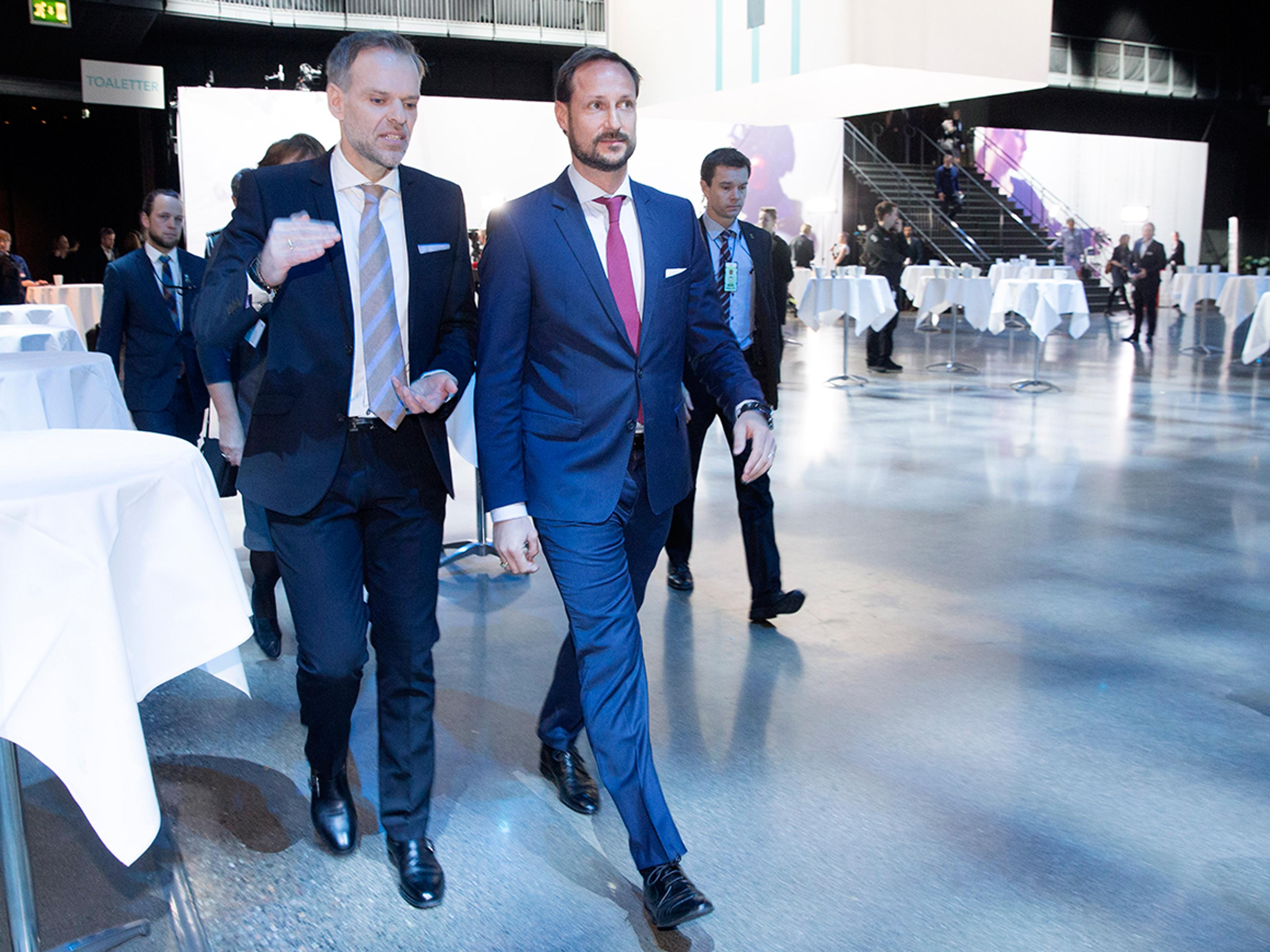 I kveld deltek Kronprinsen på NHOs årsmiddag, som òg er lagd til Spektrum.
