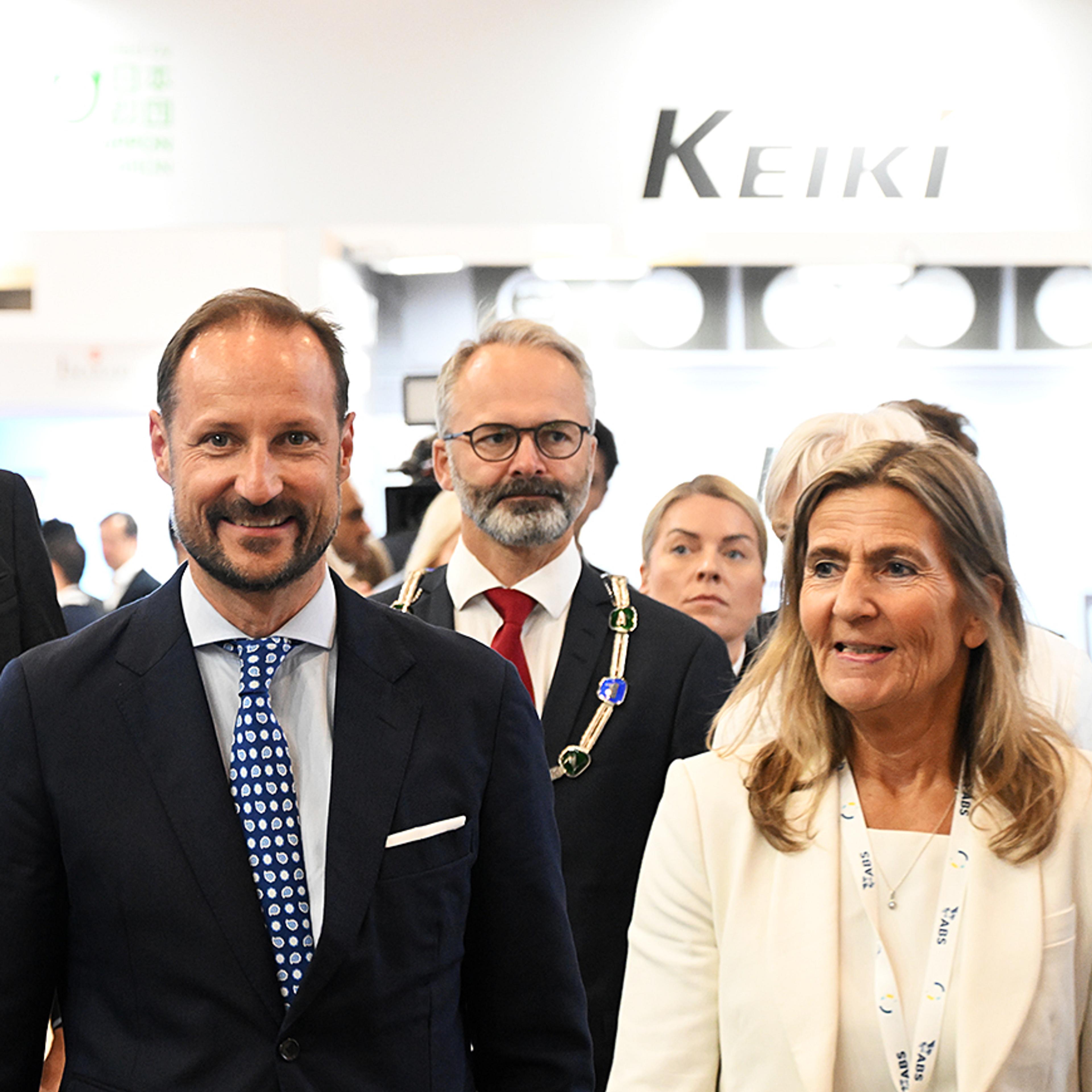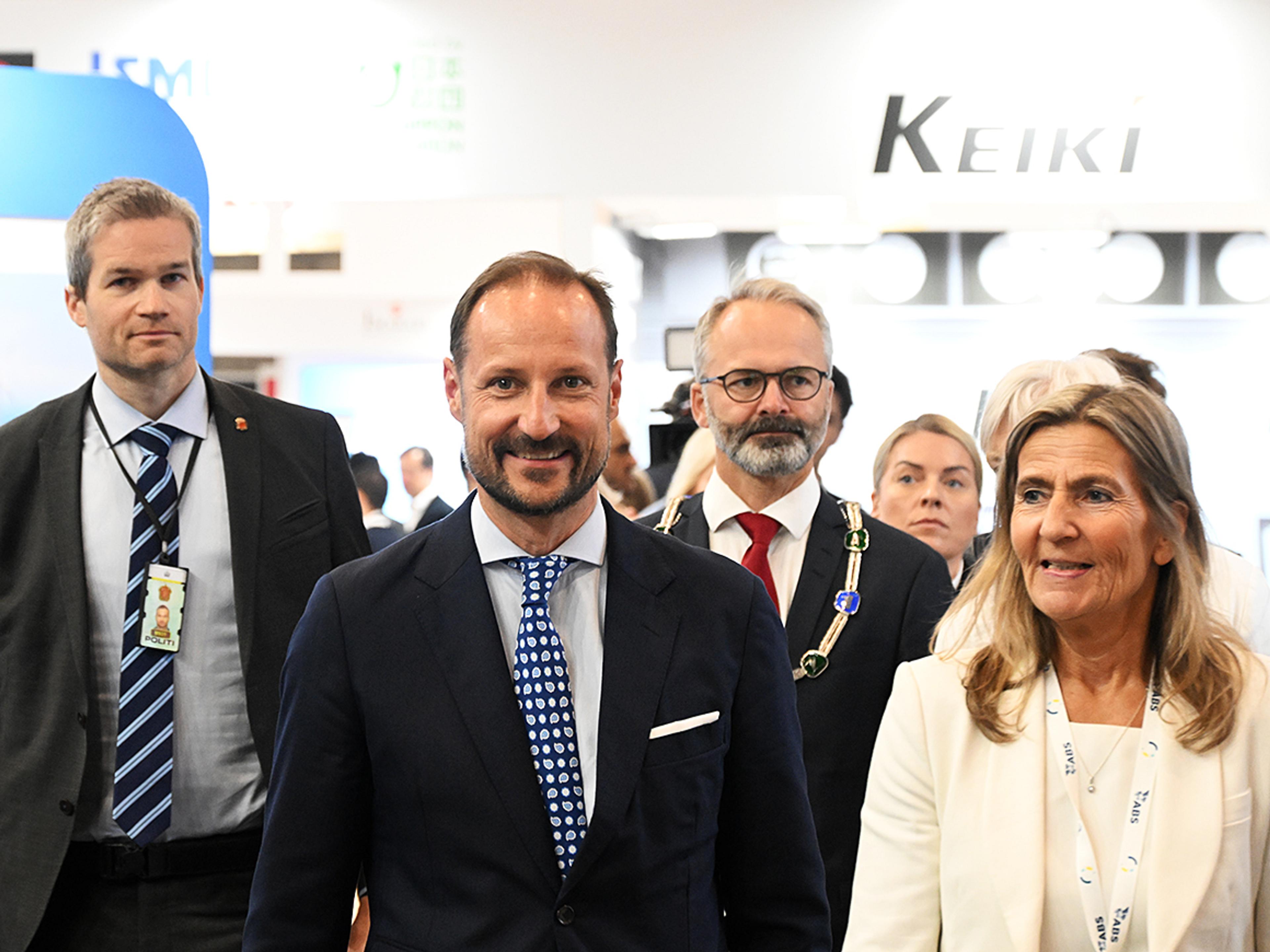 Kronprinsen var òg til stades ved debatten «Aktivering av det maritime vendepunkt», før han fekk ei omvising i utstillingshallane, der ei lang rekkje norske og utanlandske aktørar har stands under Nor-Shipping.