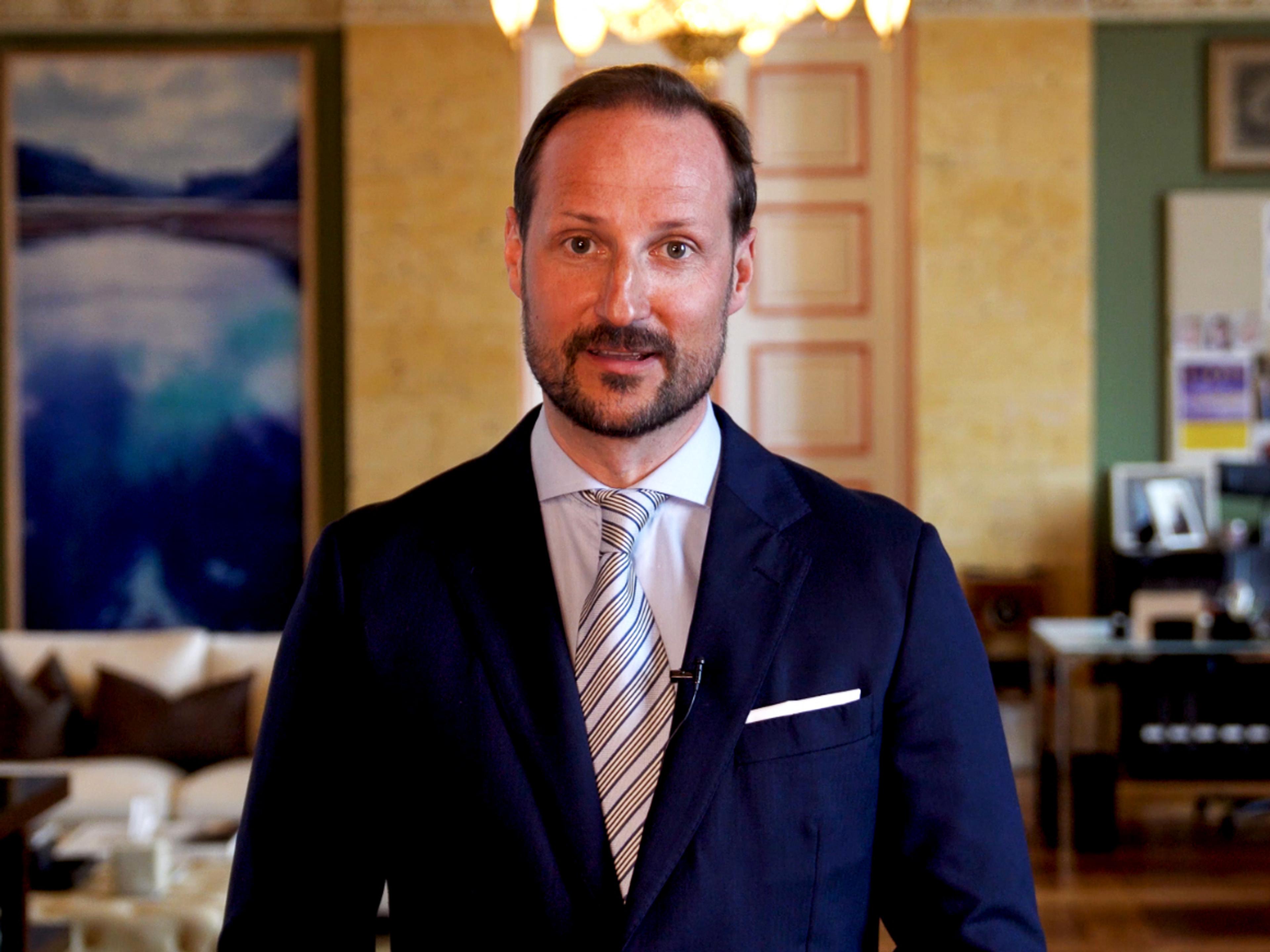 Kronprins Haakon åpnet andre dag av konferansen SKUP 2021 med en digital hilsen til journalistene. Foto: Simen Sund, Det kongelige hoff