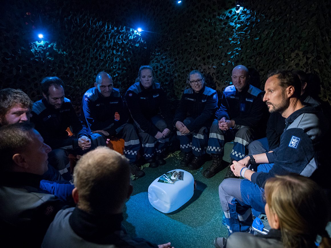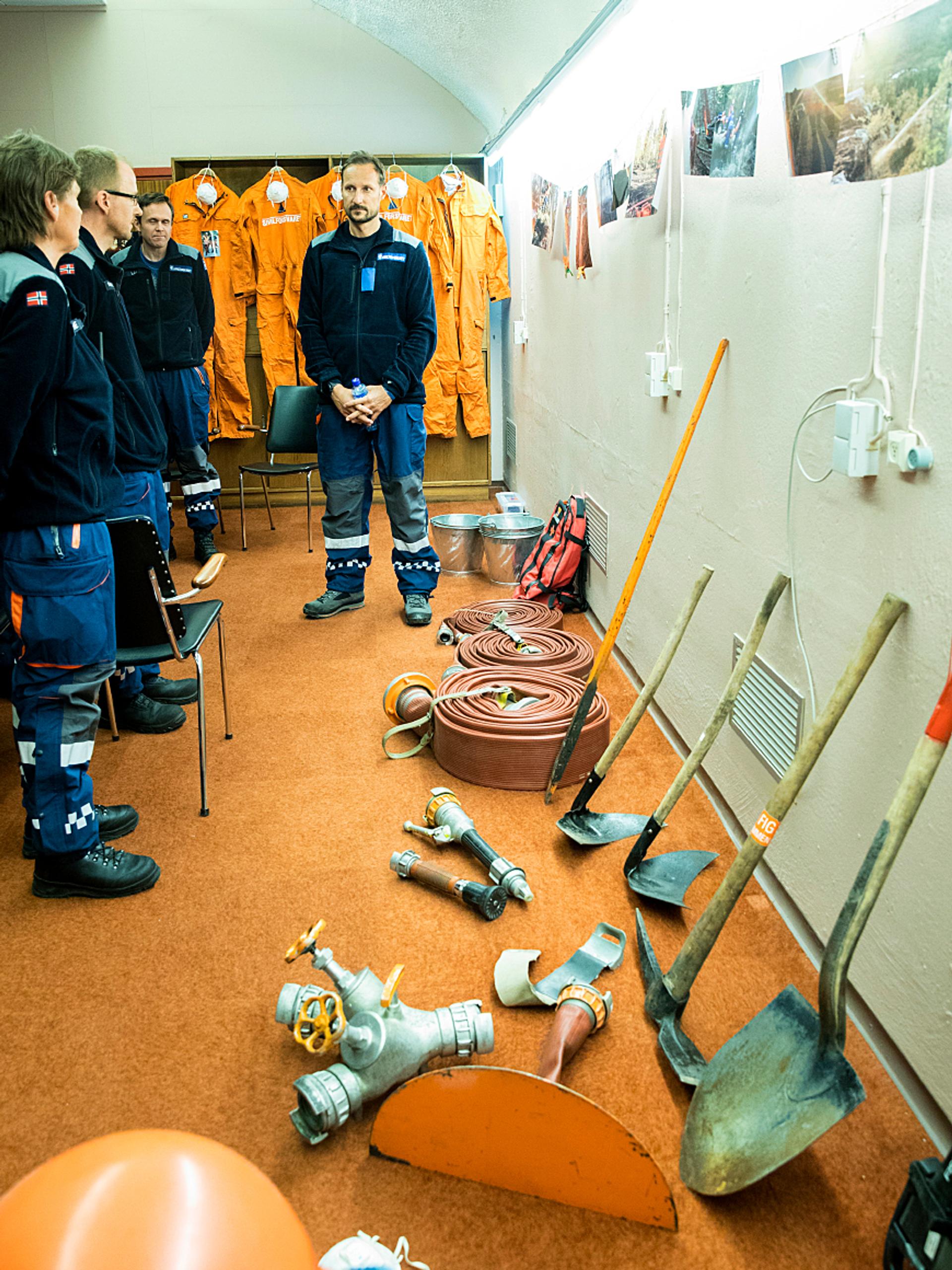 Kronprinsen møtte med befal og mannskap inne i den atomsikre fjellhallen fra 1973. De ga et innblikk i hvordan det er å jobbe på kommandoplass under en skogbrann, hvor store mannskaper det er behov for og hvordan det er å jobbe med skogbranner om natten. Det er ofte da slukkingen har størst effekt, og vannet ikke bare fordamper i det strålen treffer bakken.