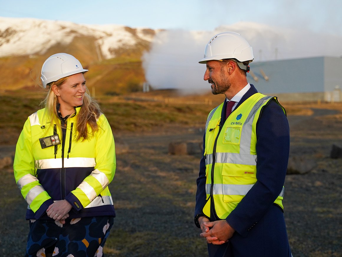 I ettermiddag besøkte Kronprins Haakon Hellisheiði geotermiske kraftverk som bruker banebrytende teknologi innen karbonfangst og -lagring for å redusere utslipp fra den geotermiske energiproduksjonen.