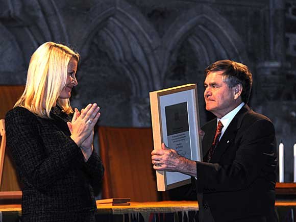 Så kom tiden for utdeling av årets Holbergpris, som i år gikk til den kanadiske professoren i filosofi Ian Hacking. Kronprinsessen mottok først prisvinneren i audiens i kommandantboligen på Bergenshus, før den høytidelige seremonien i Håkonshallen. Kronprinsessen overrakte prisen til Hacking, mens statsråd Kristin Halvorsen overrakte Nils Klims prisen til den danske forskeren David Bloch.