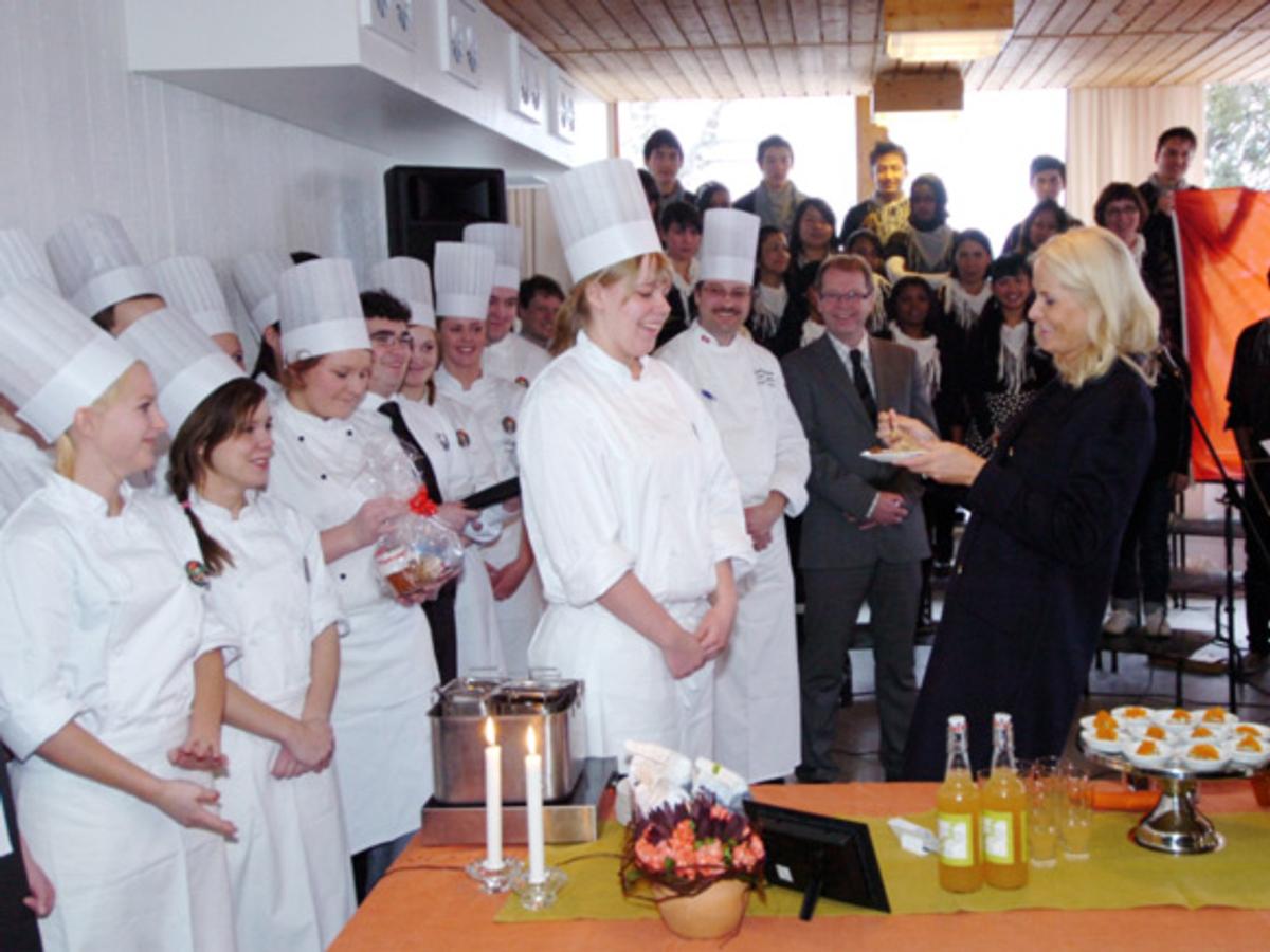 Kronprinsessen fikk også prøvesmake mat fra ungdomsbedriften ”Kortreist Mat UB” under besøket på Sjefsgården.