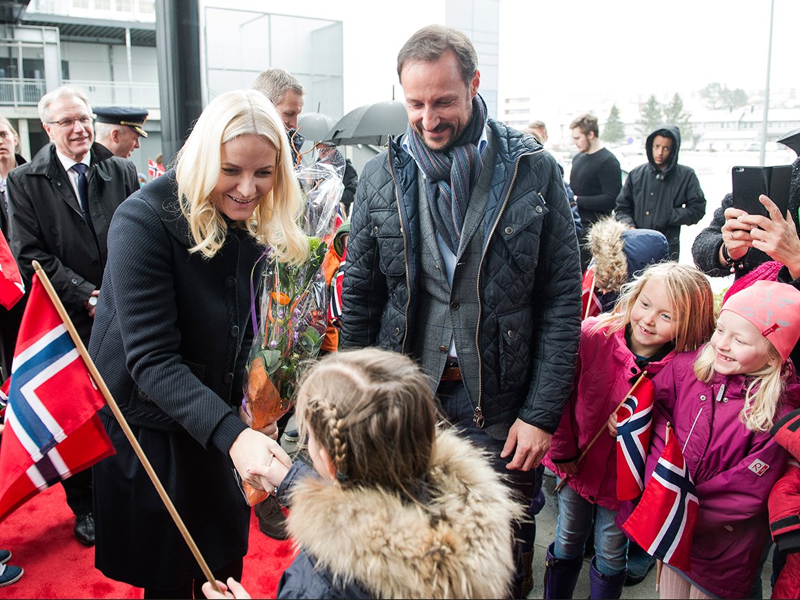 Kronprins Haakon og Kronprinsesse Mette-Marit ble ønsket velkommen av 80 elever fra Kampen barneskole, og dagen startet med foredrag ved Trivselslederne om "trivsel, aktivitet og inkludering i skolen".