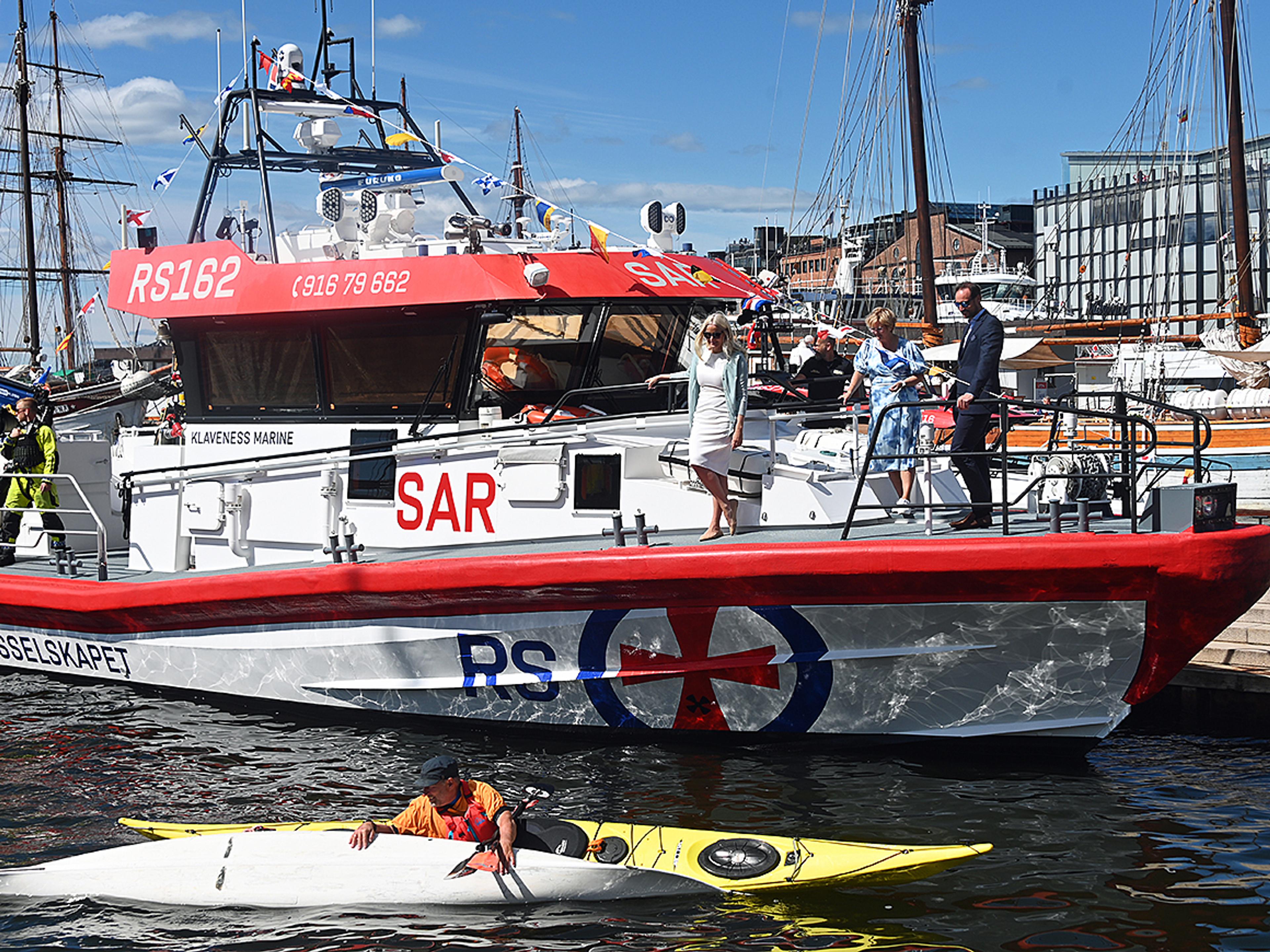 Kronprinsparet fikk se nærmere på og møte mannskapene på den fast bemannende RS «Klaveness Marine» og den frivillig bemannede RS «Prinsesse Ragnhild». Kronprinsparet fikk også en orientering om Redningsselskapets nye støttefartøy.