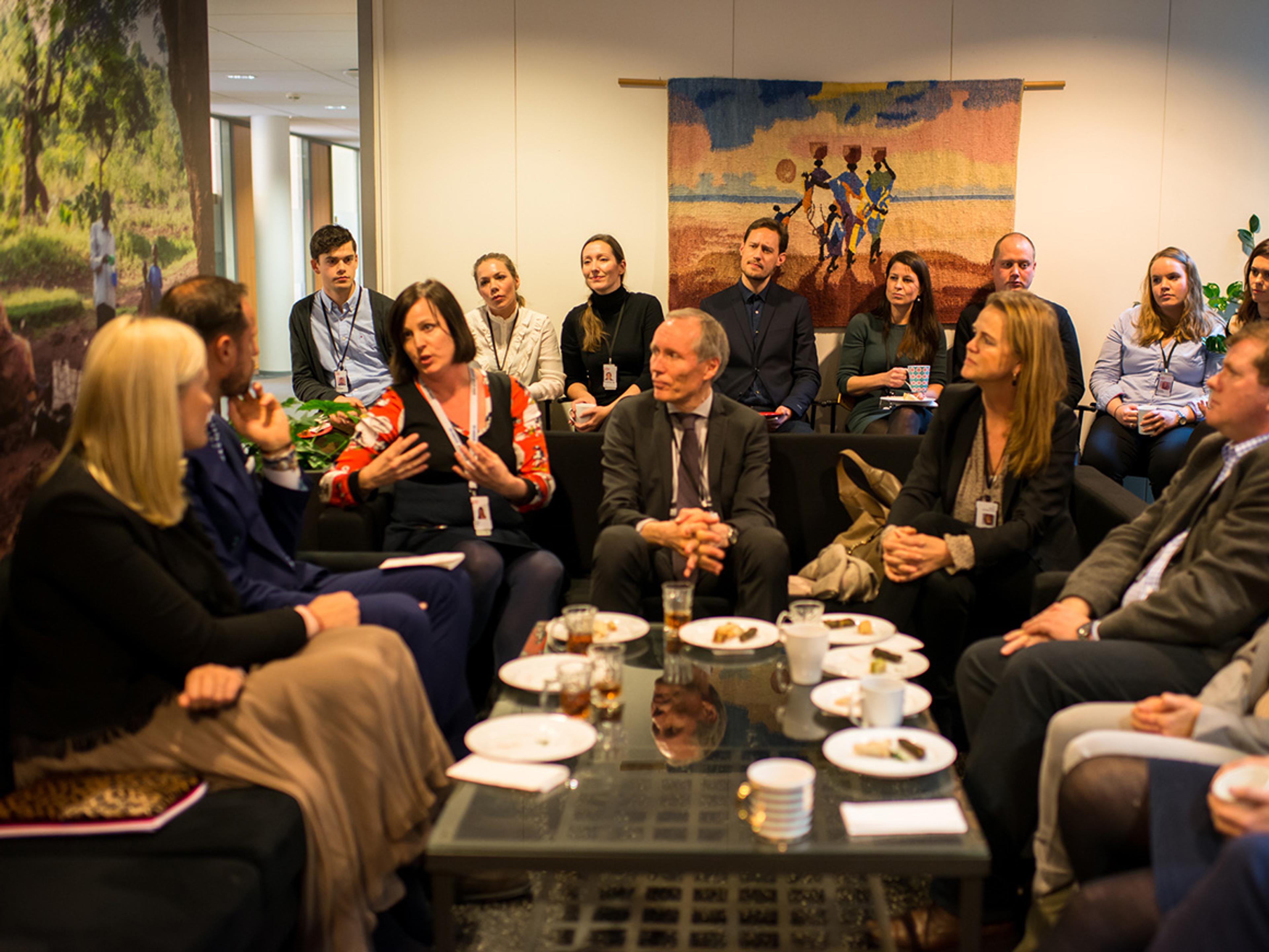 De som kommer til Norge uten sine familier har mulighet til å søke om familiegjenforening. Kronprinsparet fikk også en orientering om denne prosessen før de fikk servert te fra Midtøsten og møtte flere av de ansatte som fortalte om sin arbeidshverdag i UDI.