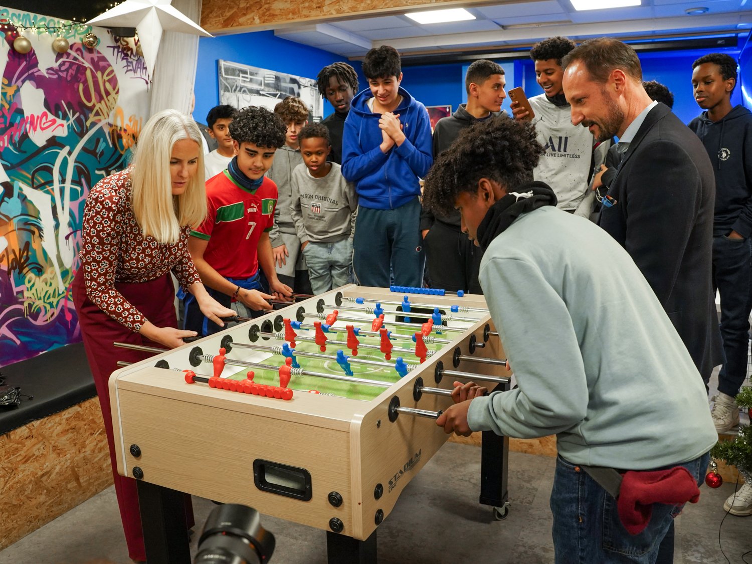 Kronprinsparet ble vist rundt på huset av senterleder Dipali Gosain. De besøkte kafeen og fikk både sett og prøvd noen av aktivitetene som tilbys her, som playstation, fussballbord og bordtennis. Det arrangeres også ulike kurs i regi Drammen Røde Kors, og i dag var det baristakurs for ungdom. Kronprins Haakon og Kronprinsesse Mette-Marit fikk selv en innføring i baristafaget.
