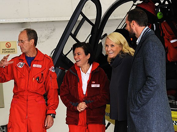 Kronprinsen og Kronprinsessen hadde mange spørsmål under omvisningen på basen, som også omfattet bilder fra noen av de dramatiske situasjonene der besetningen hadde vært tilkalt. Basen hadde nesten 600 oppdrag i 2009.