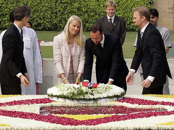 Onsdagen startet med et besøk til Rajghat, der Kronprinsparet la ned krans på minnesmerket over Indias store leder Mahatma Gandhi.