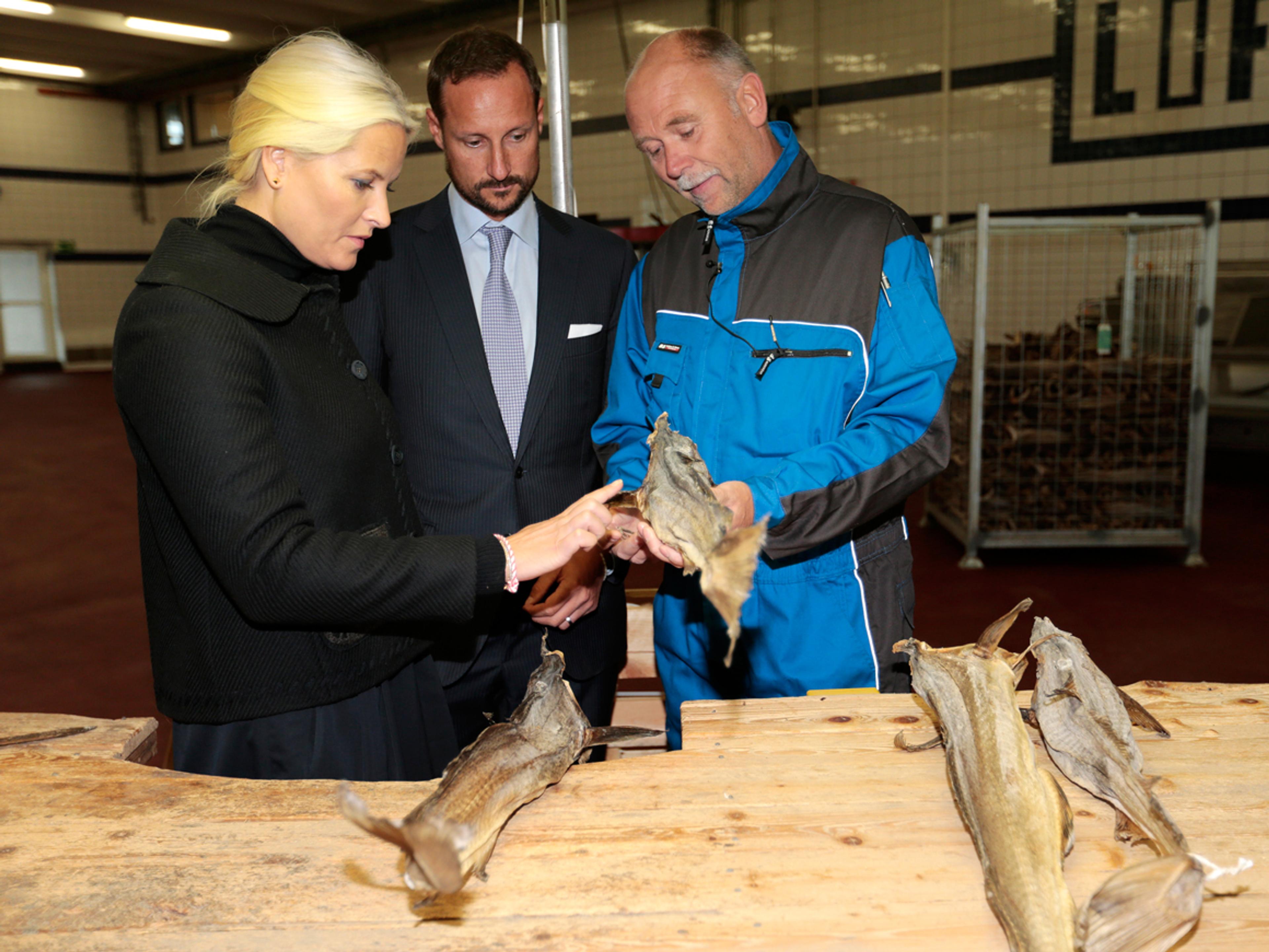 På besøk hos hjørnesteinsbedrifta Lofoten Viking venta ei innføring i dei ulike kvalitetane tørrfisk. Etter ei kort omvising med innlagd tørrfisktapas fekk Kronprins Haakon og Kronprinsesse Mette-Marit forsøkje seg på vraking. Det er viktig å bestemme kvaliteten på fisken, og den høgaste kvaliteten har tradisjonelt gått til middelhavslanda og deira bacalao. Venezia er Værøys vennskapskommune, noko som burde bety at italienarane er godt fornøgde med leveransane.