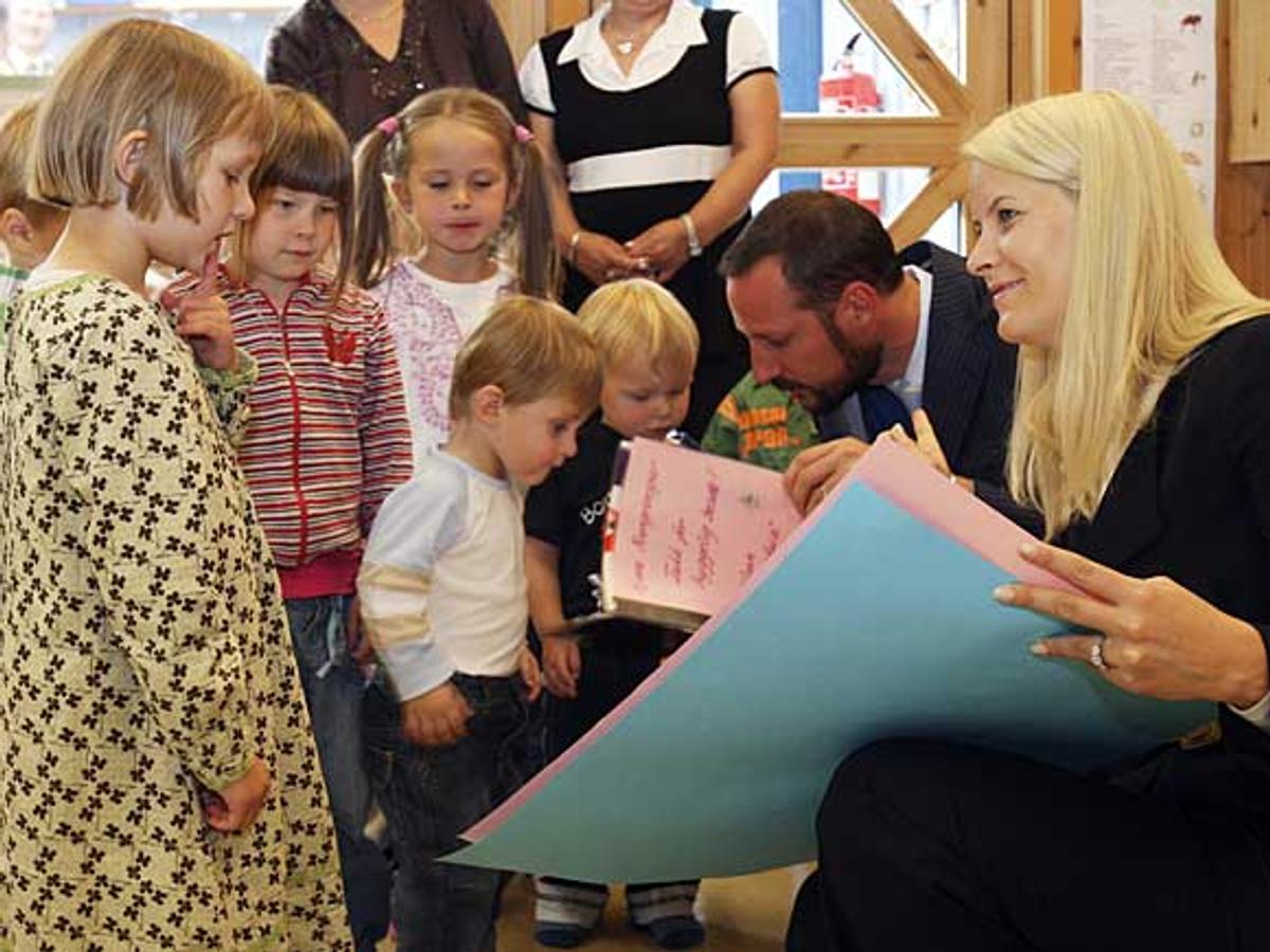 Kronprinsparet ankom kaien i Olderdalen i Kåfjord kommune mandag morgen. Her gikk turen til den lokale barnehagen, der Kronprinsen og Kronprinsessen ble vist omkring og fikk hilse på barna, som opptrådte for Kronprinsparet på norsk og samisk.