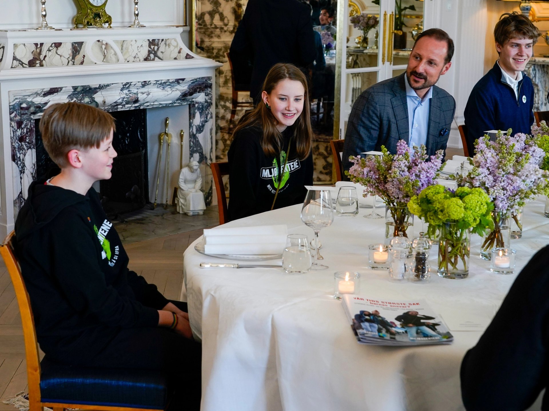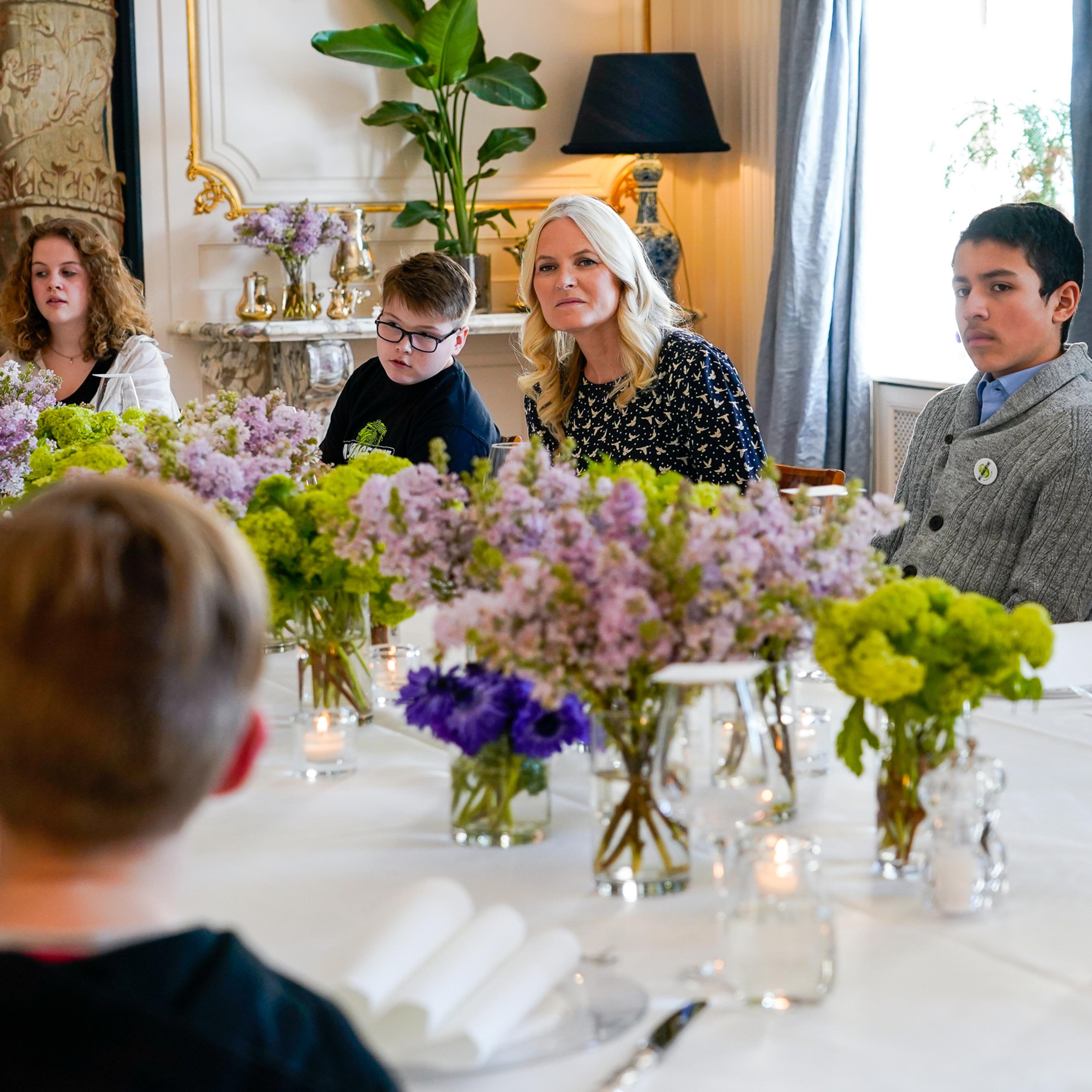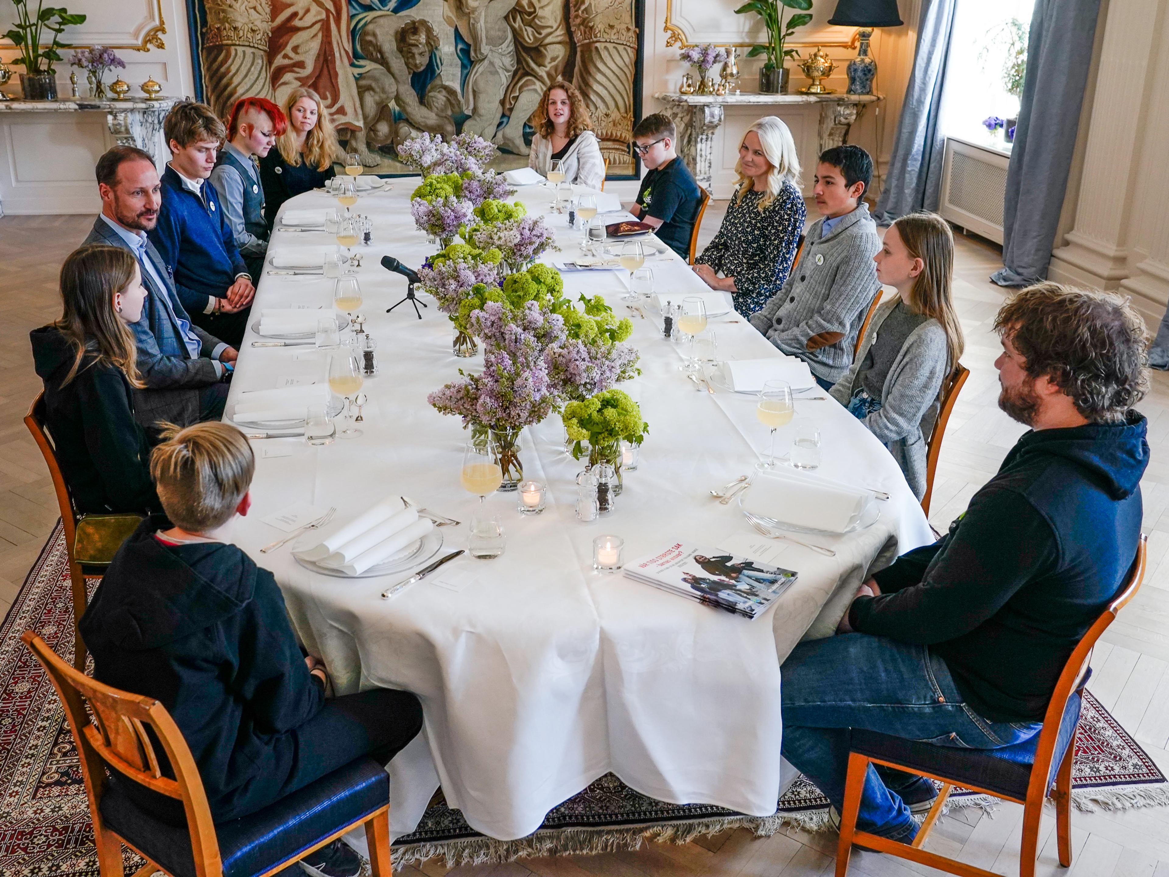 Den Høgvørde Kronprinsen og Den Høgvørde Kronprinsessa hadde invitert panelet av barn i alderen 11 til 15 år til Skaugum for å høyre meir om engasjementet deira for å ta vare på naturen og kloden – og kjempe mot klimaendringar.