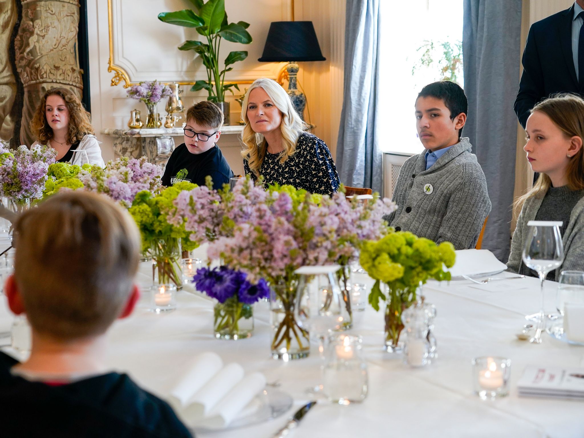 Kronprinsesse Mette-Marit ønskte dei engasjerte unge velkommen til Skaugum, og alle rundt bordet fortalde kort om seg sjølve og kvifor dei har valt å engasjere seg i klima og miljø.