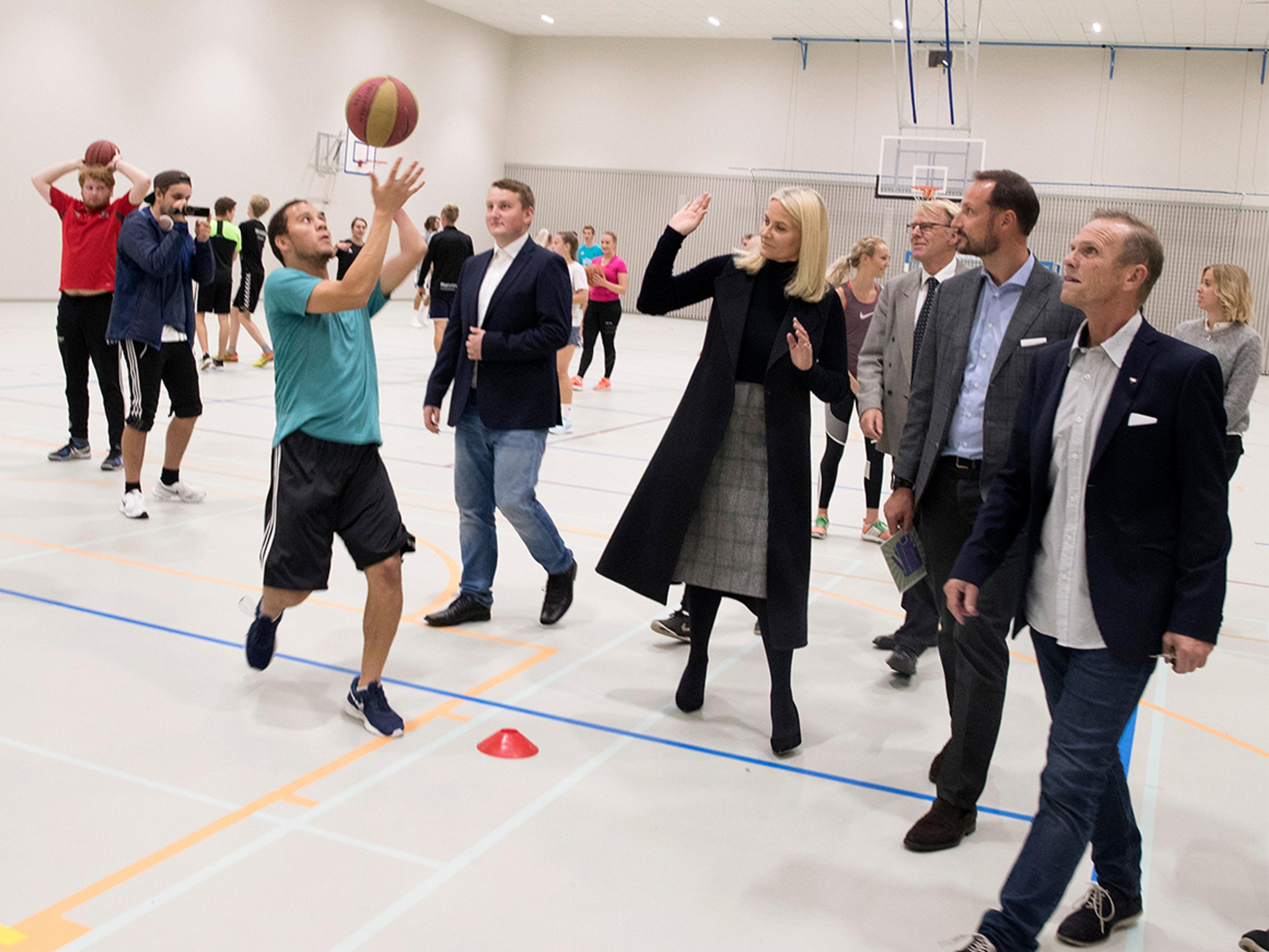 Sammen med elevrådsleder Marius Bråten, viste rektor Sven Harsten stolt frem skolen sin til Kronprinsparet. Kronprinsen og Kronprinsessen fikk først bli litt kjent med skolen gjennom en video som film- og TV-linja hadde produsert. Deretter gikk turen ut til skolens nye fotballbane. På banen fikk Kronprinsparet møte elver som fortalte om skolens egen linje for toppfotball. Kronprinsparet fikk også møte elver på kunstlinja som var i gang med å skisse veggmalerier da paret var innom.