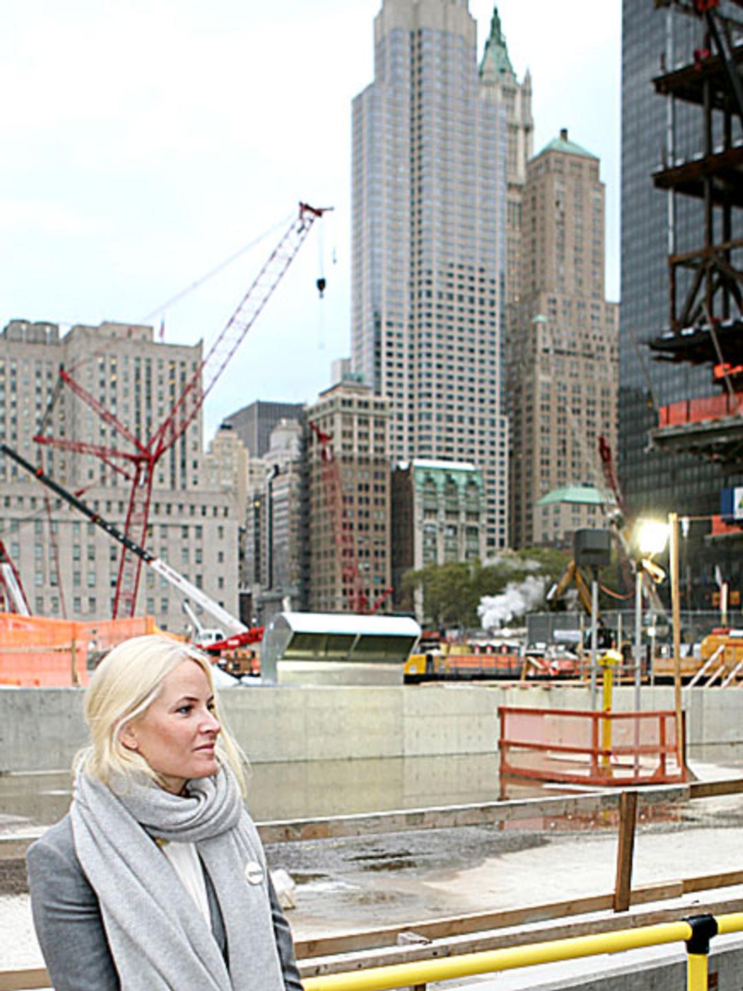 Deres Kongelige Høyheter Kronprinsen og Kronprinsessen besøkte Ground Zero på Manhattan i dag morges. Arkitektene i Snøhetta har fått det viktige oppdraget med å tegne museumspaviljongen som skal stå i minneparken her.