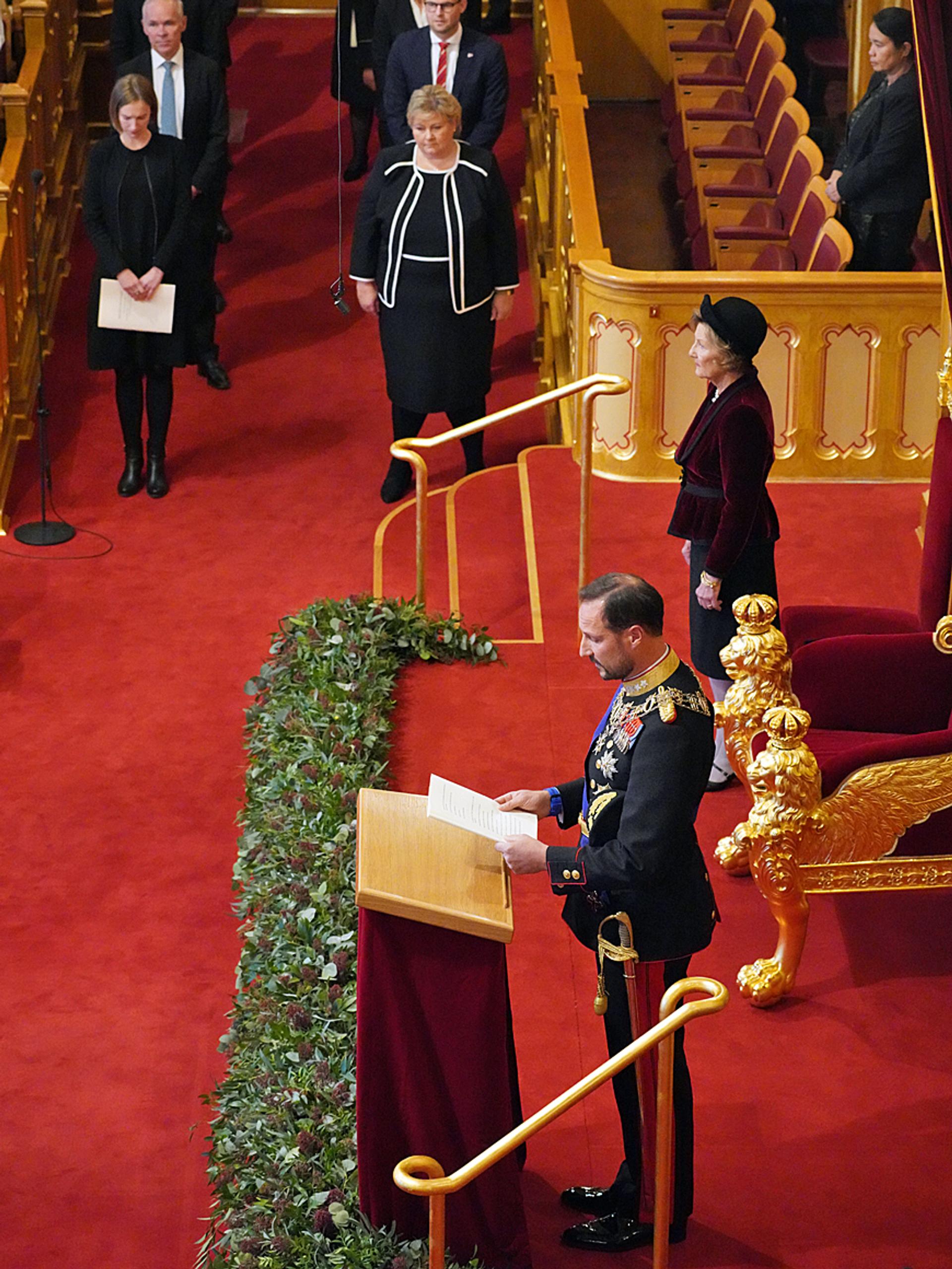 Kronprins Haakon leste trontalen for første gang i dag. Hans Majestet Kongen er sykemeldt, og Kronprinsregenten foretok den høytidelige åpningen i hans sted.