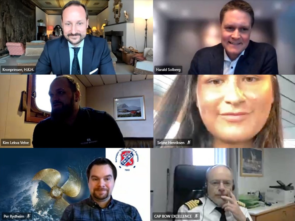 Kronprins Haakon møtte også representanter for sjømannsorganisasjonene og rederinæringen under den digitale seilasen.