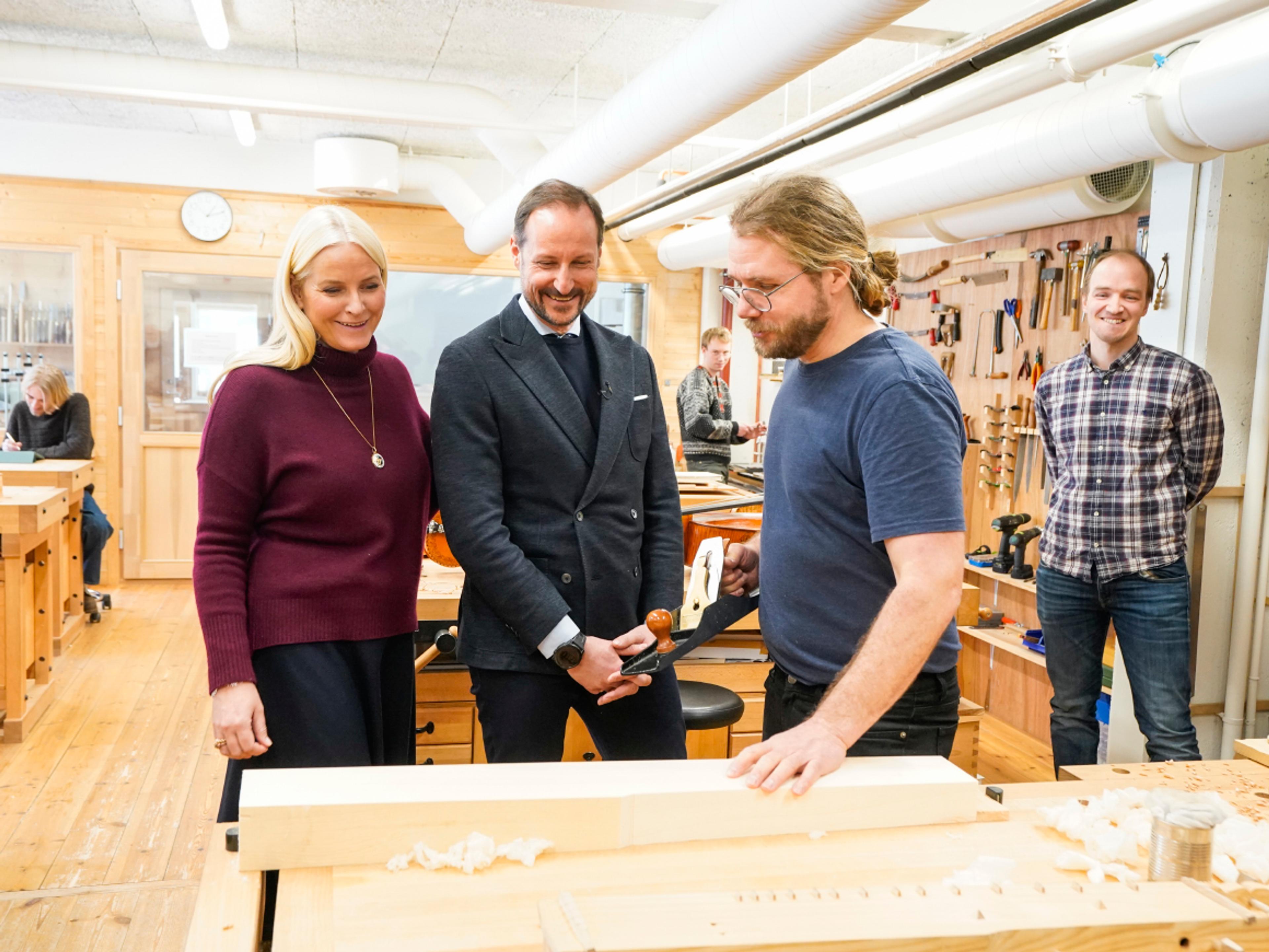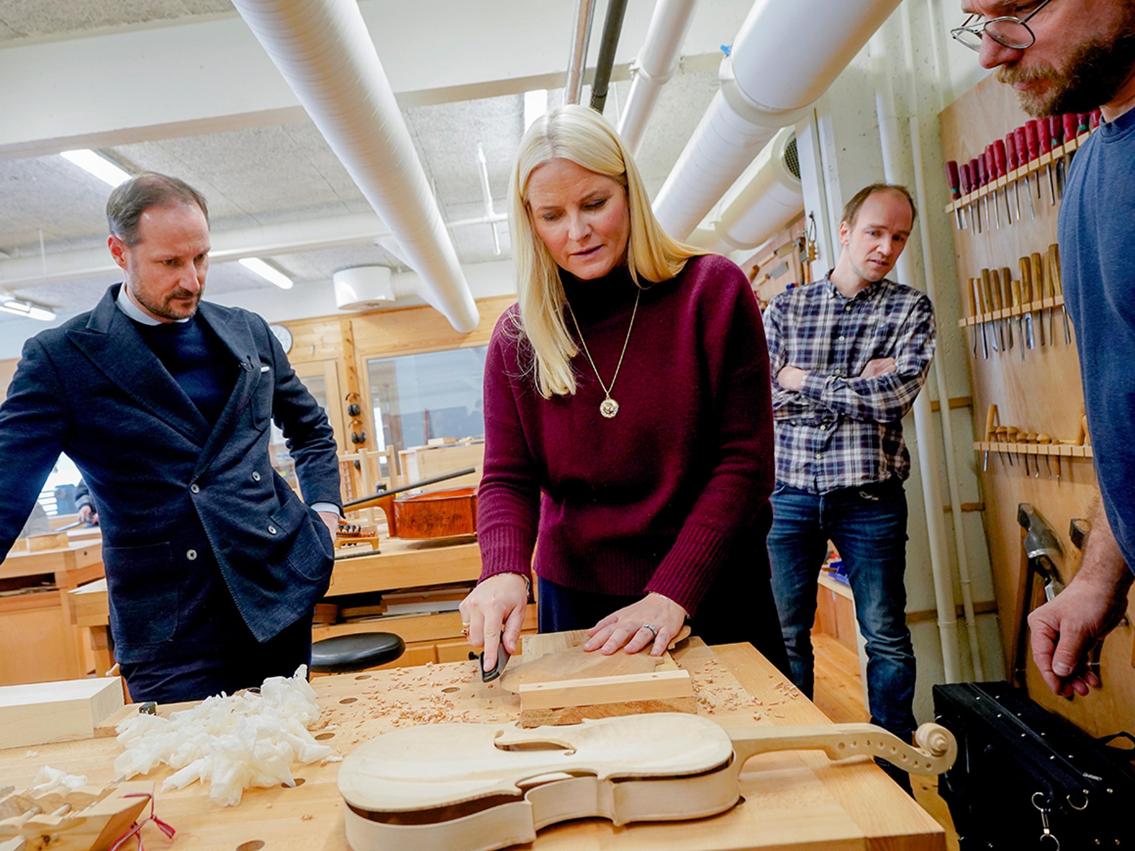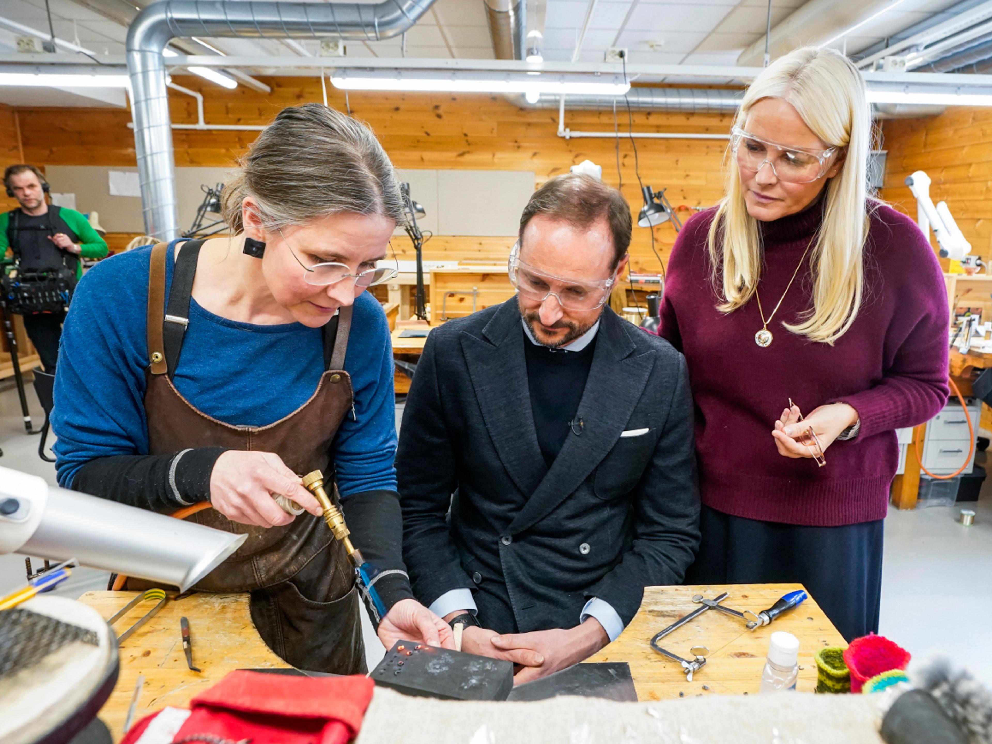 I metallverkstaden demonstrerte Linn Sigrid Brattland korleis dei lagar smykke, og i treverkstaden kunne dei sjå korleis blant anna instrument til tradisjonsrik folkemusikk blir til. Kronprinsen og Kronprinsessa fekk prøve seg på å file og høvle til nokre av emna.