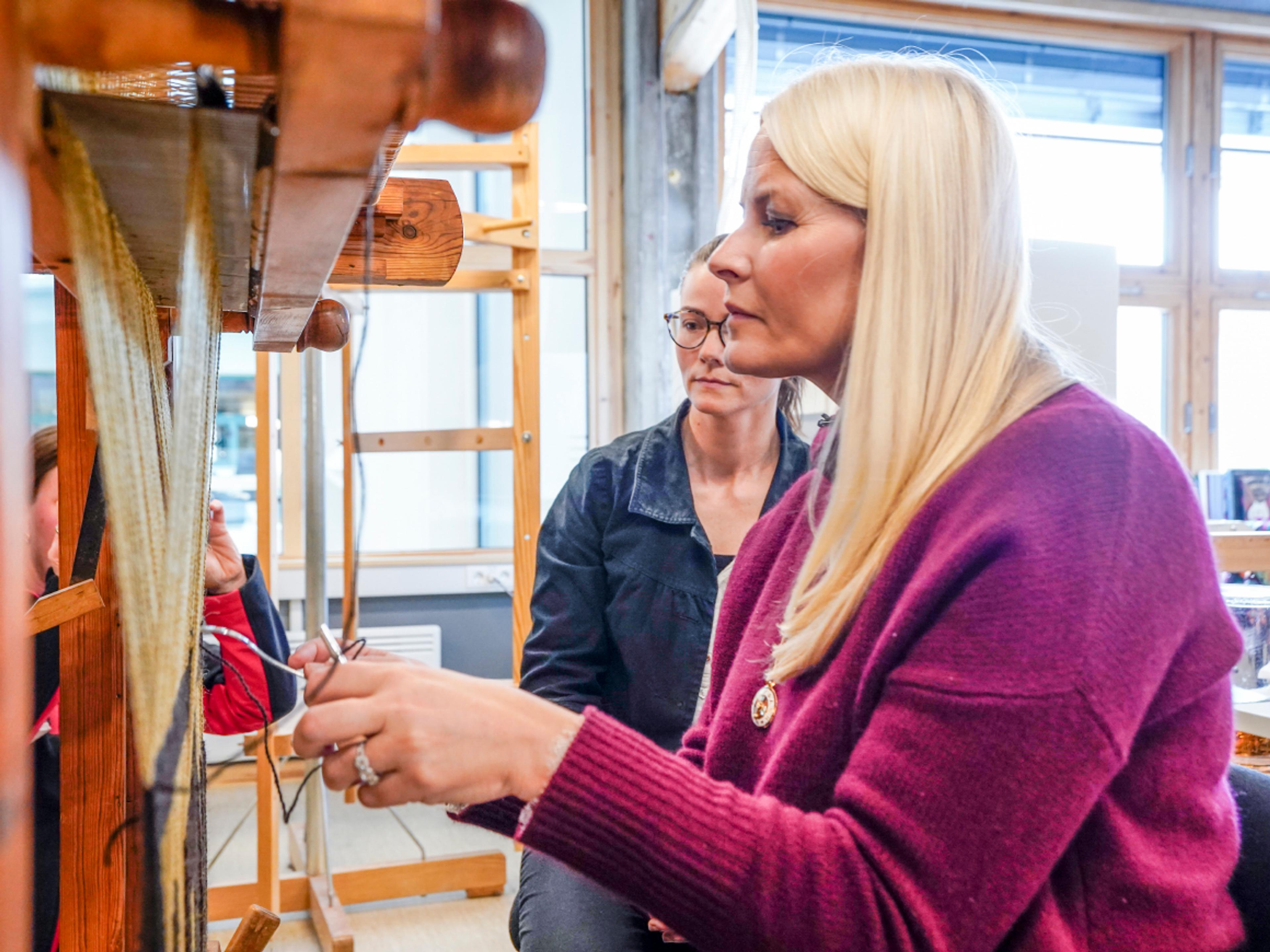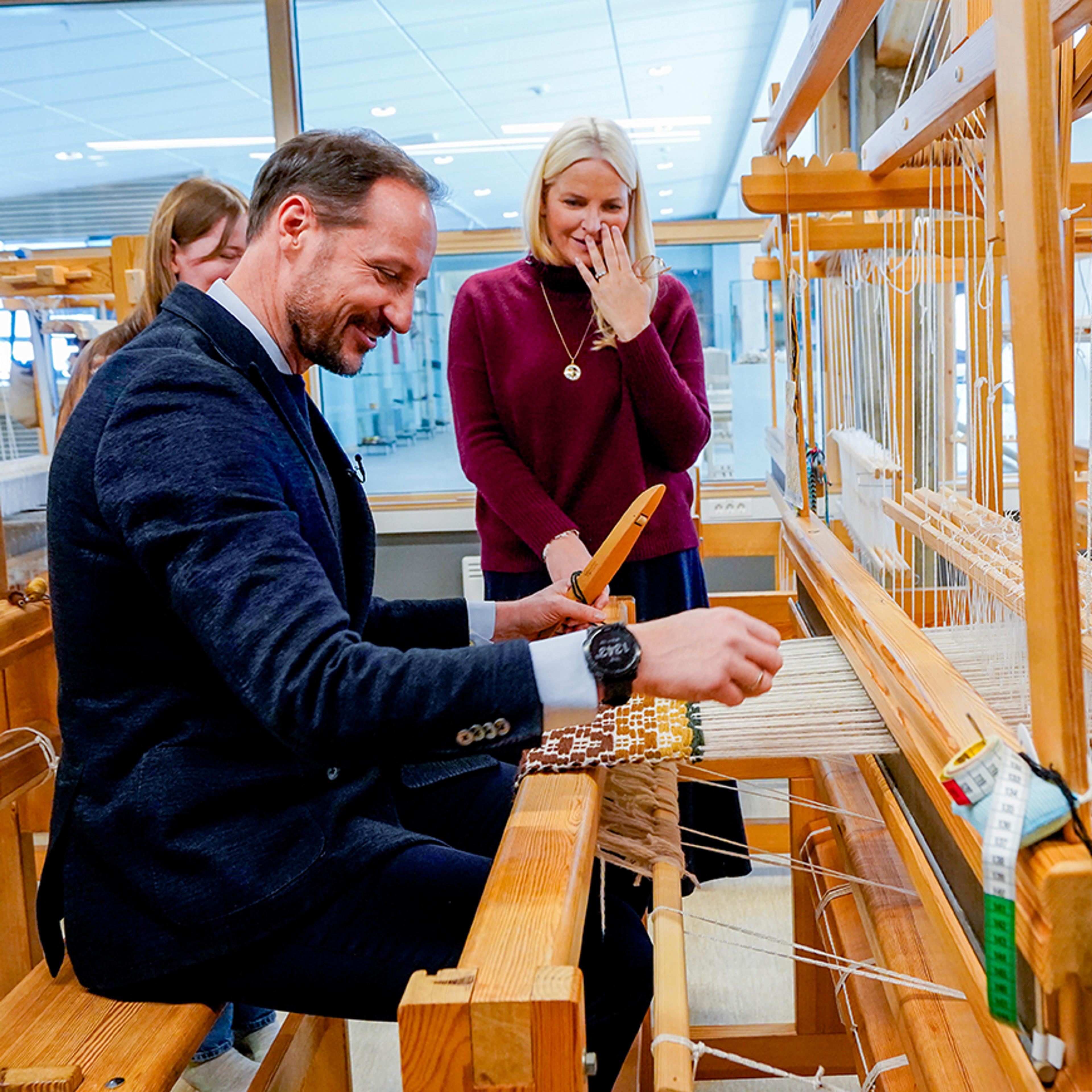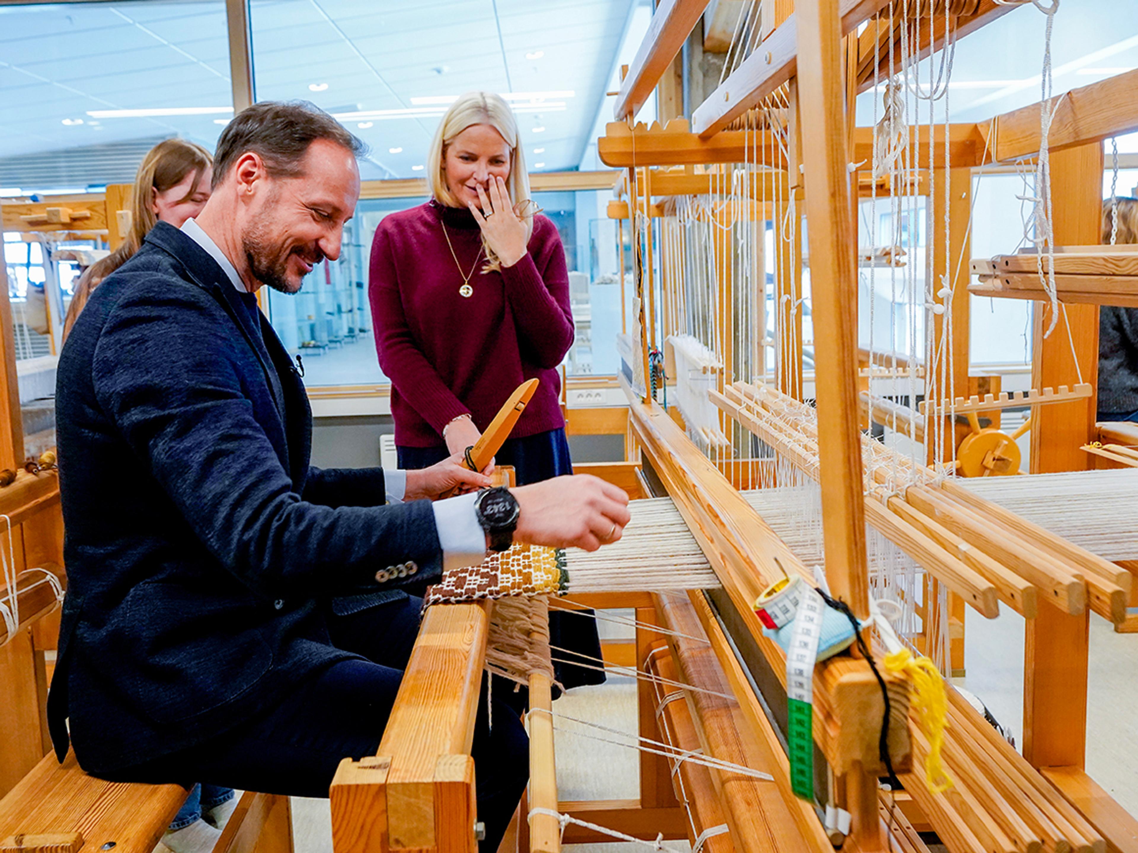 Kronprinsesse Mette-Marit er sjølv ein aktiv vevar og har delteke på kurs ved Raulandsakademiet tidlegare. Dermed var ikkje Kronprinsessa vond å be når det vart sjanse for å prøve seg på veving i tekstilverkstaden. Ane Brandt Sandholt viste kronprinsessa korleis ein kan buke ein gaffel som hjelpemiddel. Det vart meir lattermildt da Kronprins Haakon òg ville prøve seg.