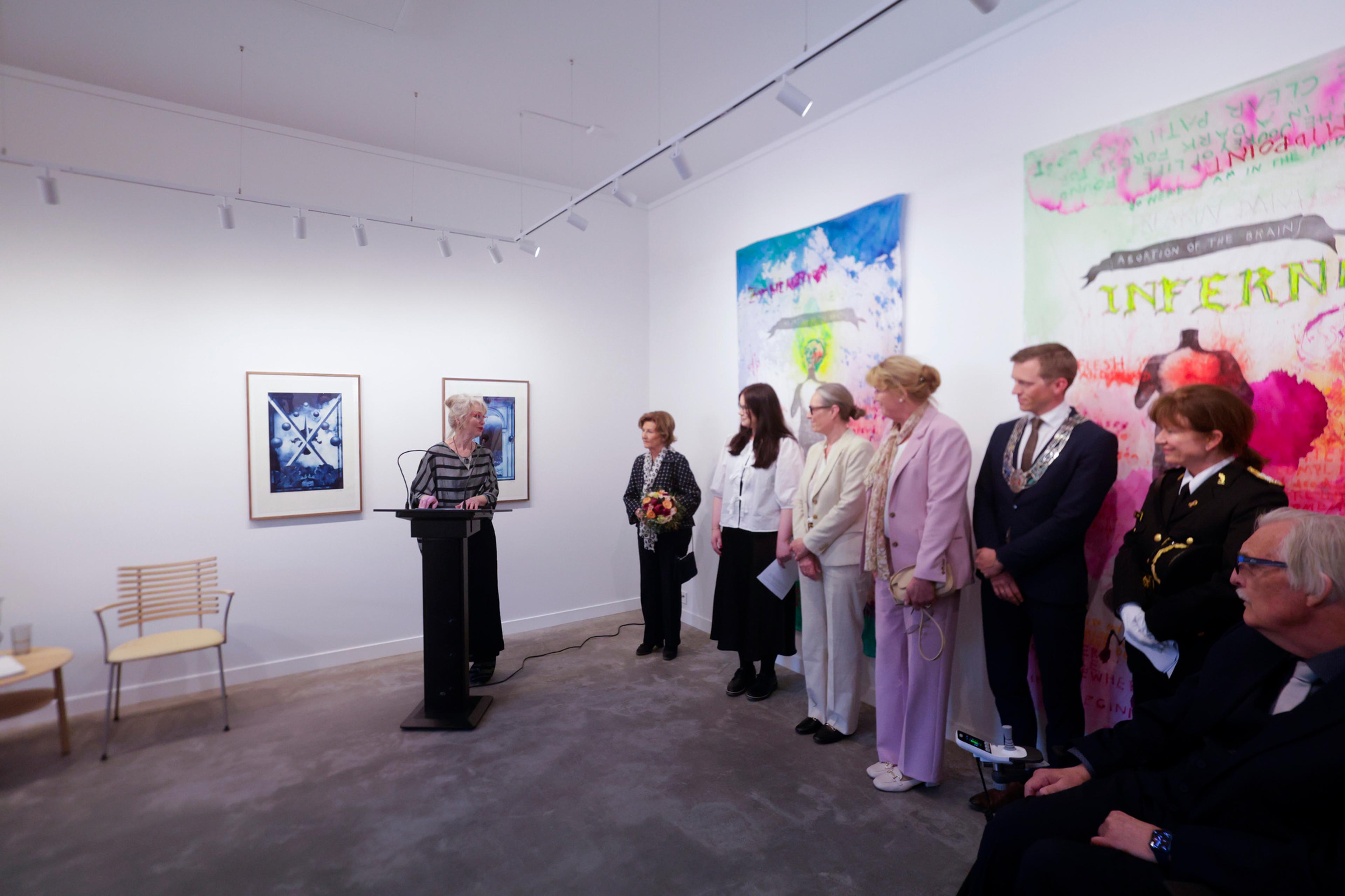 Samme ettermiddag var Dronningen til stede under en utstillingsåpning ved Galleri Myren utenfor sentrum av Kristiansand.