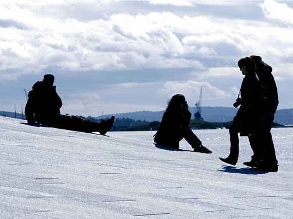 Publikum i vid forstand har adgang til operaens forplass og tak. Dette er et enormt puslespill bestående av over 30.000 enkeltsteiner med ulik form og størrelse, oppløft og overflatebehandling. Vannrenner, trapper og rekkverk har også fått en kunstnerisk utforming. Taket kan oppleves uten billett til operaen som sådan, men er et sted å spasere eller sitte og se utover.