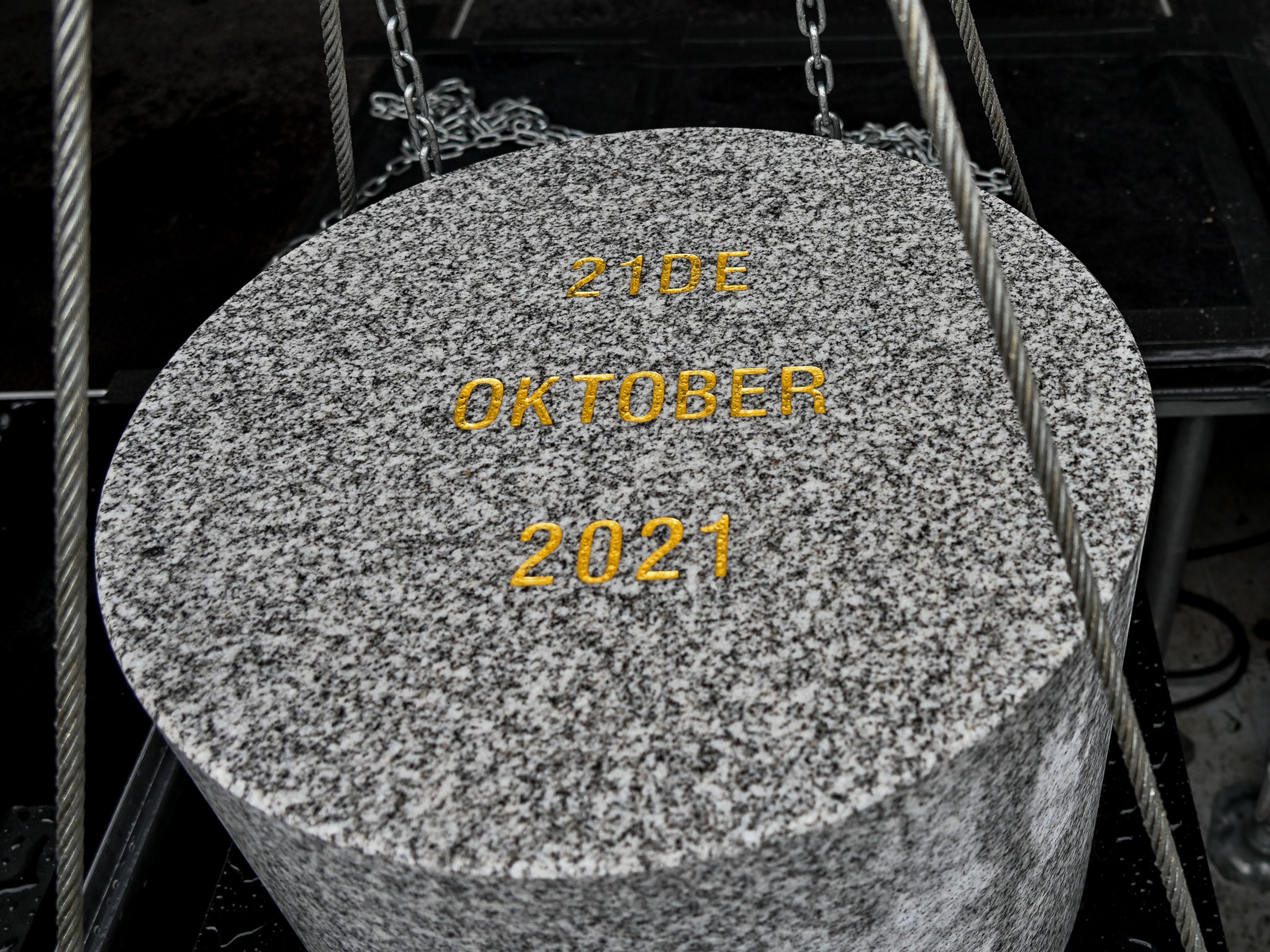 Nær 94 år etter la Kronprins Haakon ned grunnsteinen til tilbygget. Steinen ble firt ned ved hjelp av en kran, og riggen er en kopi av den Kronprins Olav brukte i 1927.