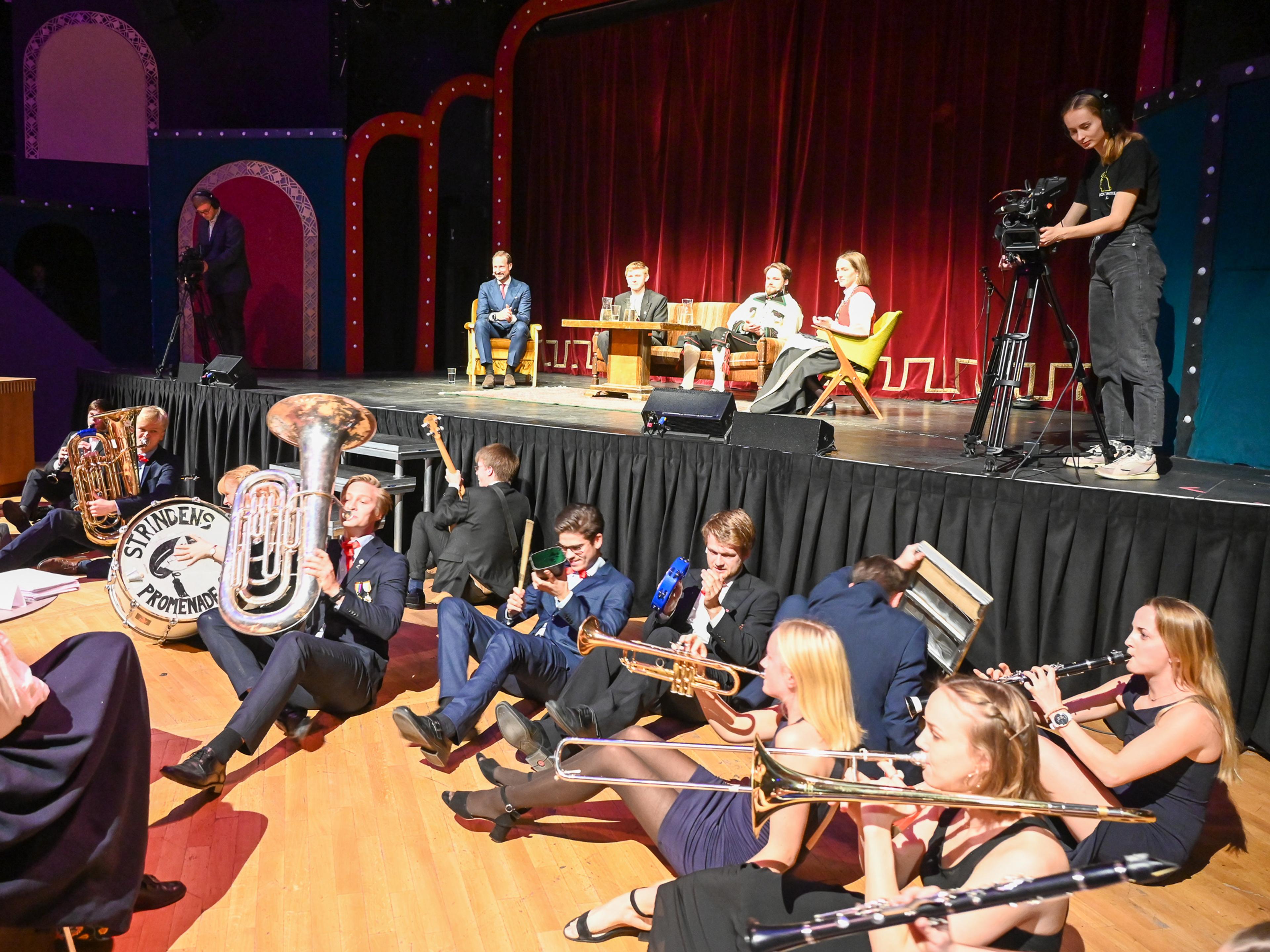 Før grunnsteinsnedleggelsen deltok Kronprins Haakon i en samtale med ukesjef Max Meinich og Studentersamfundets Fredrik Akre om studietid, studenter og psykisk helse. Sunniva Skurtveit var ordstyrer for samtalen som ble avsluttet med at studenter i salen fikk stille spørsmål til Kronprinsen.