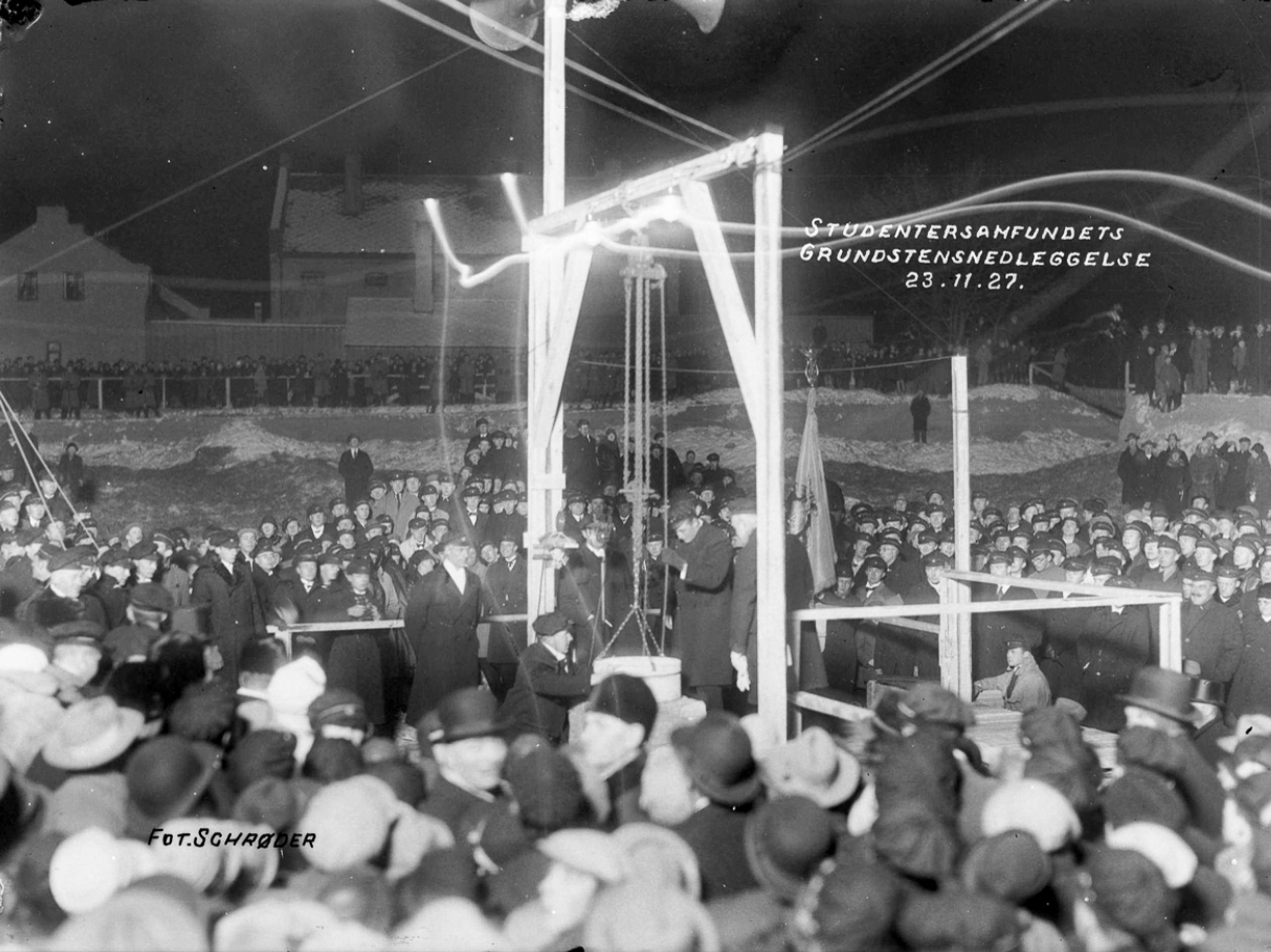 Leder for Studentersamfundet Fredrik Akre talte under grunnsteinsnedleggelsen, og Trondhjems Studentersangforening og Trondhjems Kvinnelige Studentersangforening sang og underholdt.