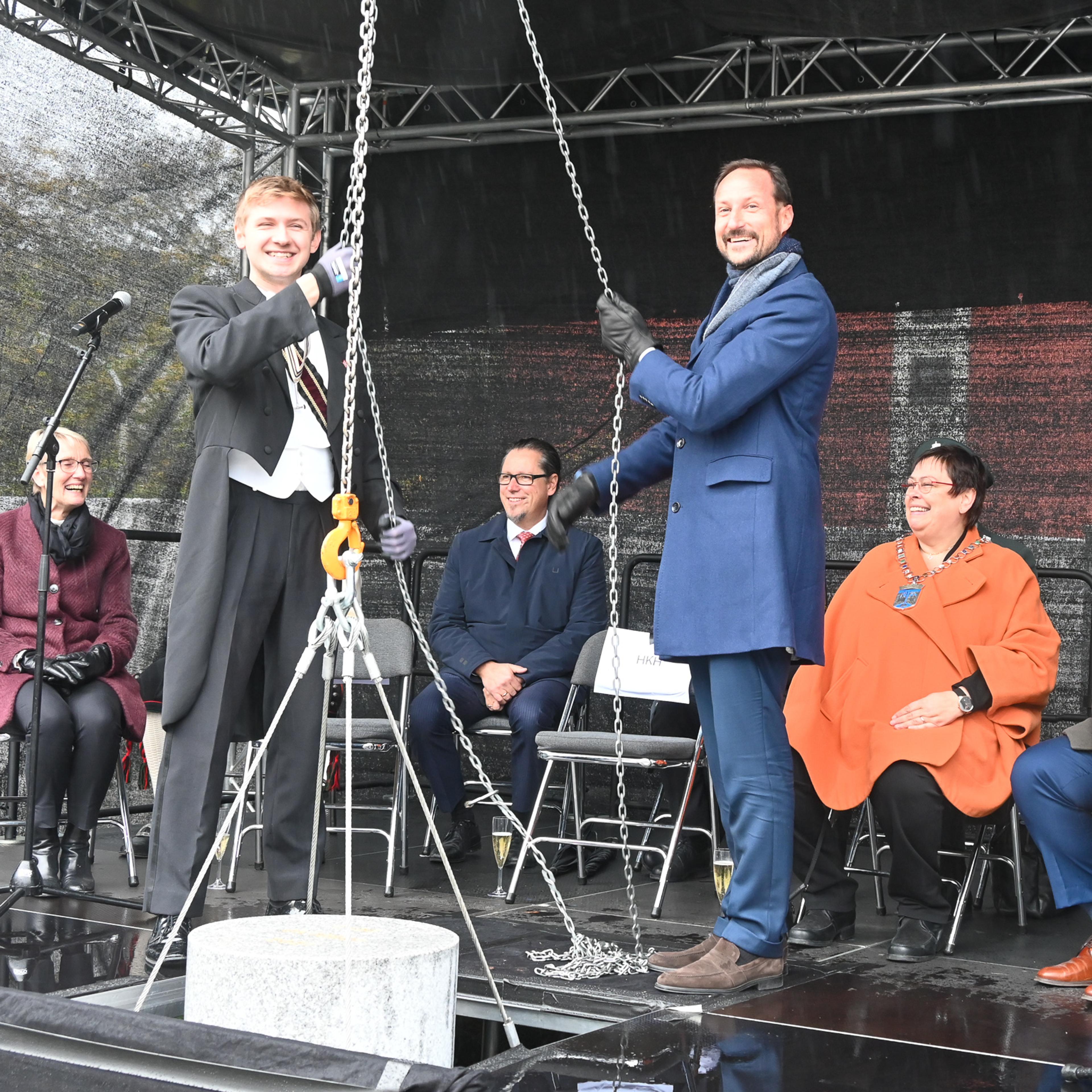 Hans Kongelige Høyhet Kronprinsen besøkte i dag studentfestivalen UKA og fulgte i farfars fotspor da han la ned grunnsteinen til Studentersamfundets nybygg i Trondheim.